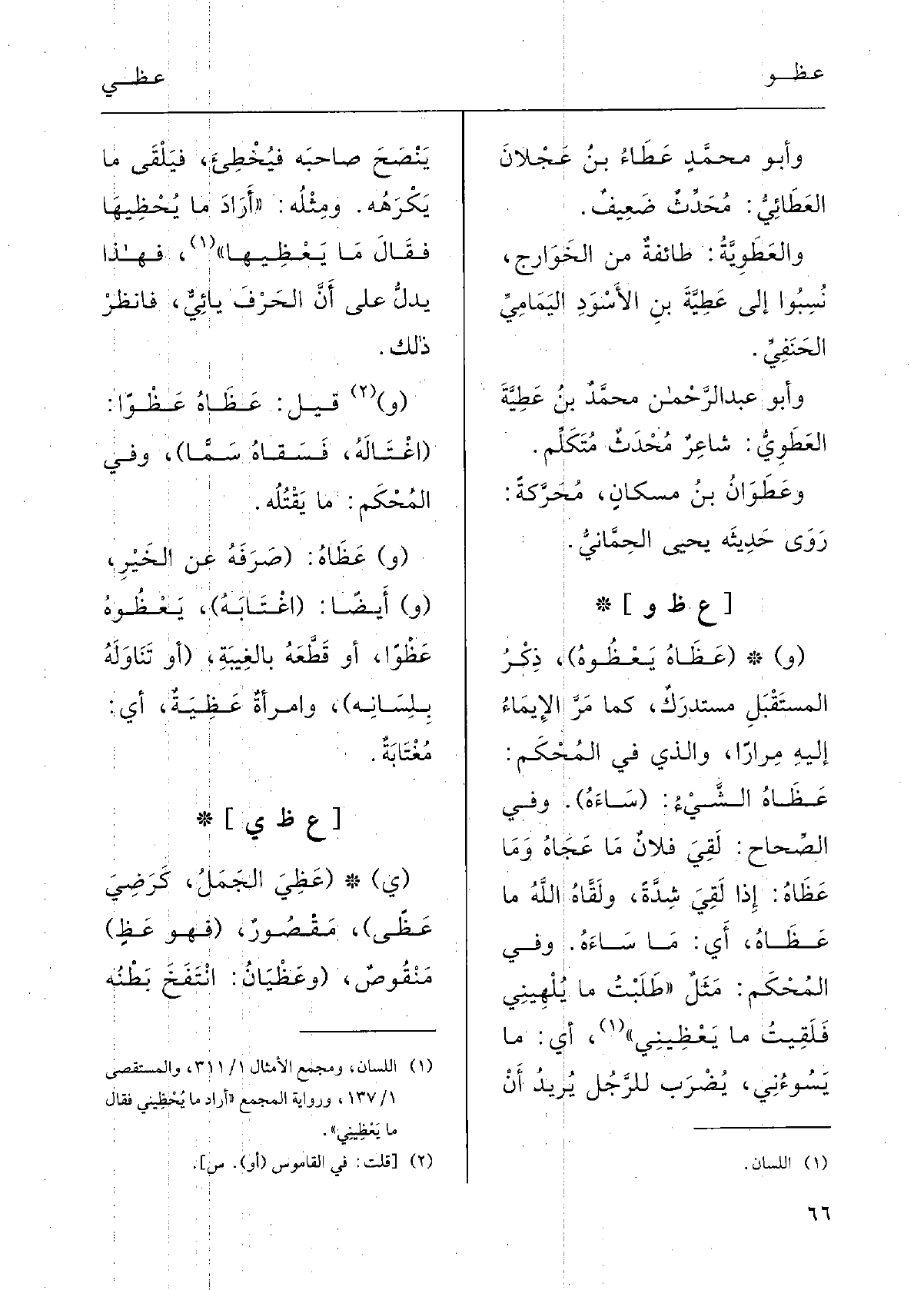 : (ي ( {عَظِيَ الجَمَلُ، كرَضِيَ،} عَظًى) ، مَقْصورٌ، (فَهُوَ {عَظٍ) ، مَنْقوصٌ، (} وعَظْيانٌ: انْتَفَخَ بَطْنُهُ