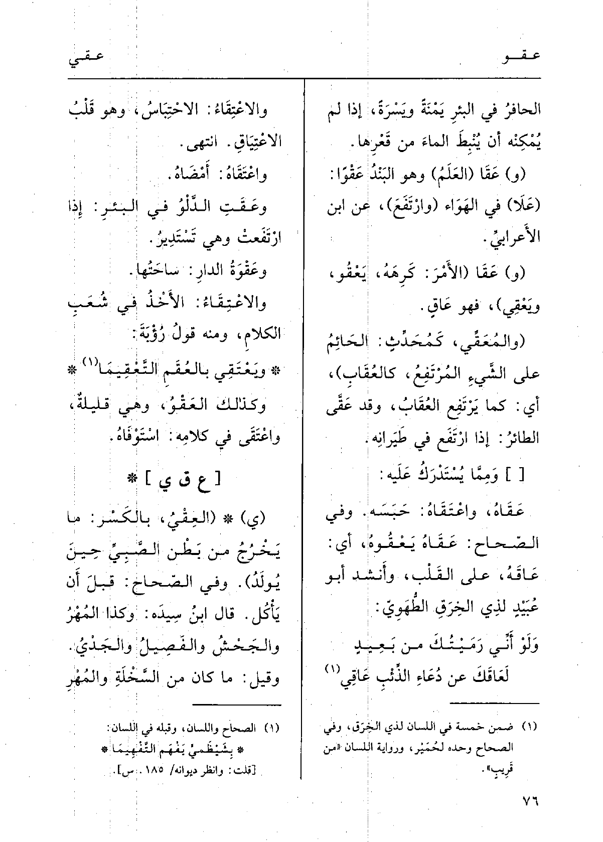 لعاقَكَ من دُعاءِ الذِّئْب {عاقِي} والاعْتِقاءُ: الاحْتِباسُ، وَهُوَ قَلْبُ الاعْتِياقِ، انتَهَى.