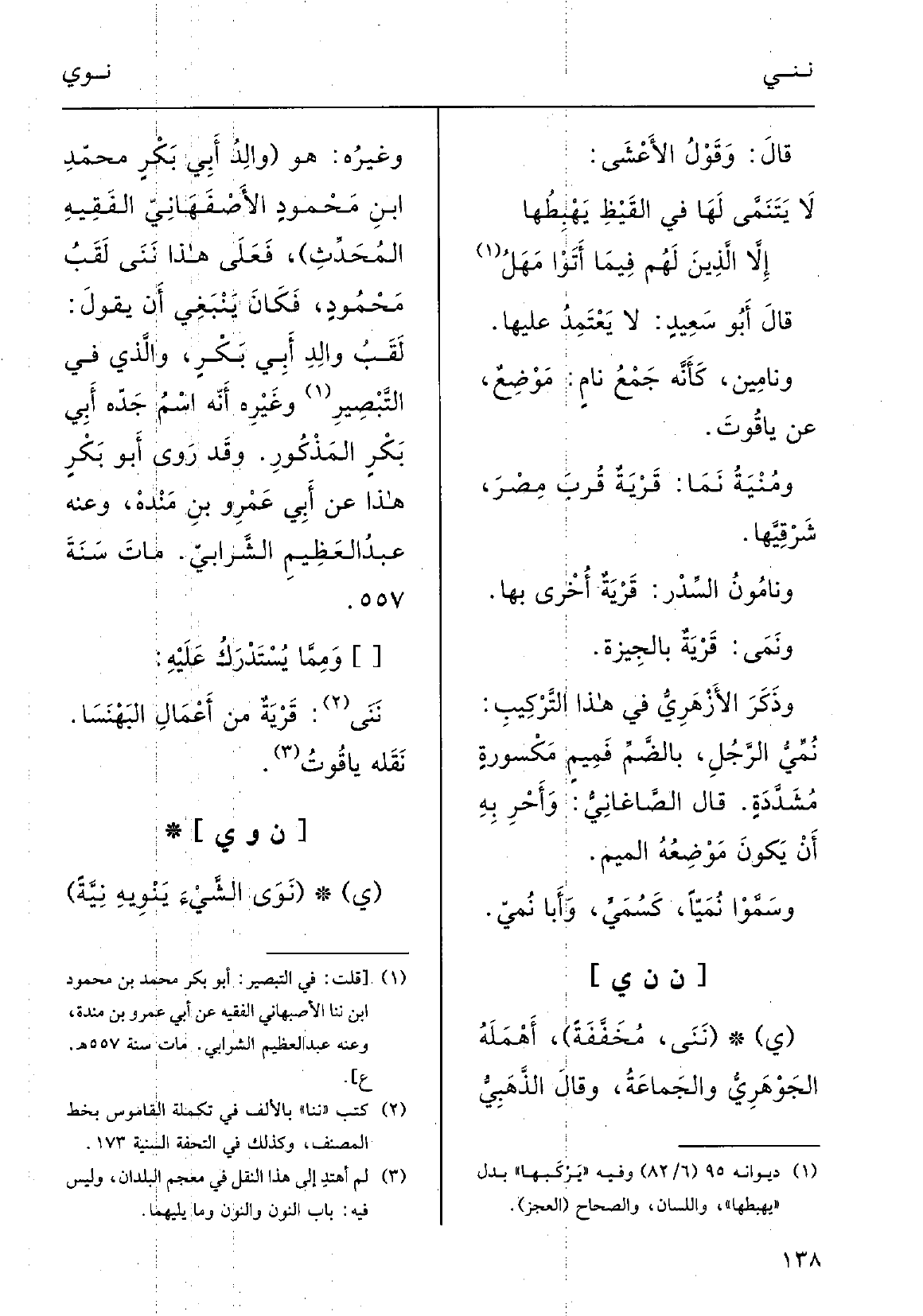 : (و ( {نَنَى، مُخَفَّفَةً) : أَهْملَهُ الجوْهرِي والجماعَةُ.