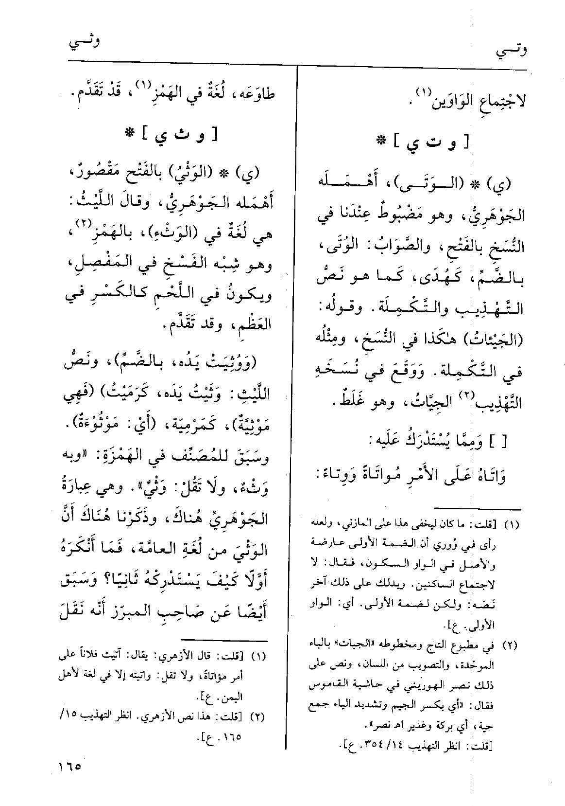 وَذَكَرْنا هُنَاكَ أنَّ الوَثْيَ مِن لُغَةِ العامَّة، فَمَا أَنْكَره أَوّلاً كيفَ يَسْتَدْرِكُه ثانِياً.