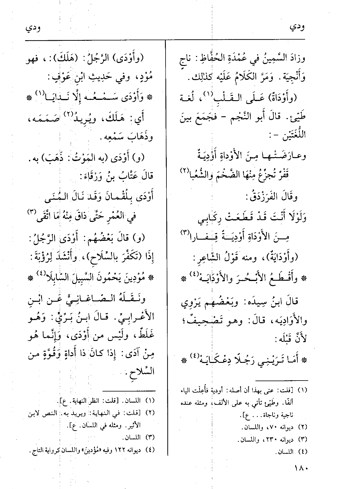 فِي العُمْرِ حَتَّى ذاقَ مِنه مَا اتَّقَى (و) قالَ بعضُهم: أَوْدَى الرَّجُل إِذا (تَكَفَّرَ بالسَّلاحِ) ؛ وأَنْشَدَ لرُؤْبَة: