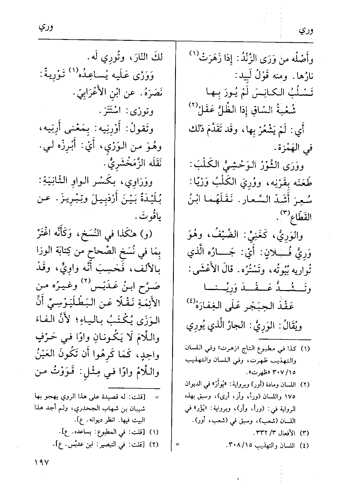وأَصْلُه من {وَرَى الزَّنْدُ إِذا زهرت نارُها، وَمِنْه قولُ لبيدٍ: