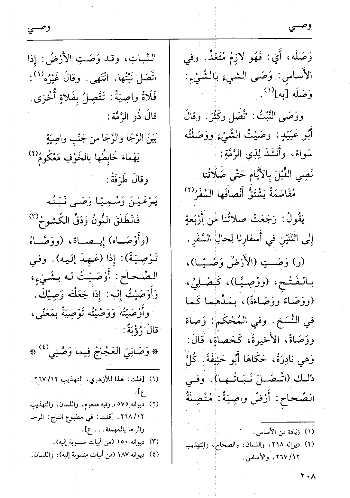 وَقَالَ أَبو عبيدٍ: {وَصَيْتُ الشيءَ ووَصَلْته سواءٌ؛ وأَنْشَدَ لذِي الرُّمَّة:
