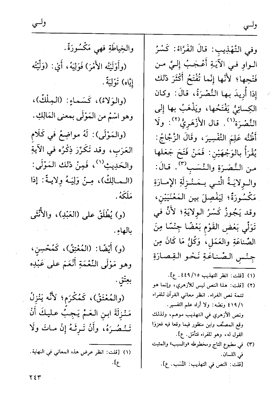 وَفِي التَّهْذِيب: قالَ الفرَّاء: كَسْر الْوَاو فِي الآيةِ أَعْجبُ إليَّ من فَتْحِها لأنَّها إنَّما يُفْتح أَكْثَر ذلكَ إِذا أُرِيد بهَا النُّصْرة، قالَ: وَكَانَ الكِسائي يَفْتحُها ويَذْهَبُ بهَا إِلَى النُّصْرةِ.