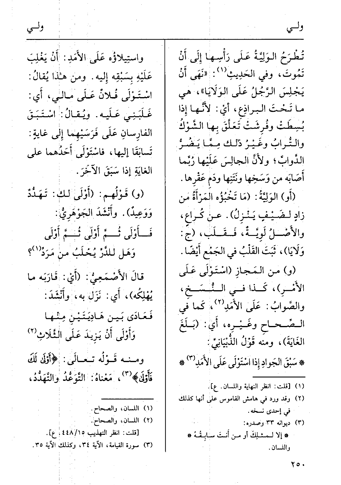 } وأَوْلَى أَنْ يَزِيدَ على الثَّلاثِ وَمِنْه قولهُ تَعَالَى: { {أَوْلَى لَكَ} فأَوْلَى} ؛ مَعْناهُ التَّوعُّد والتَّهَدُّدُ،