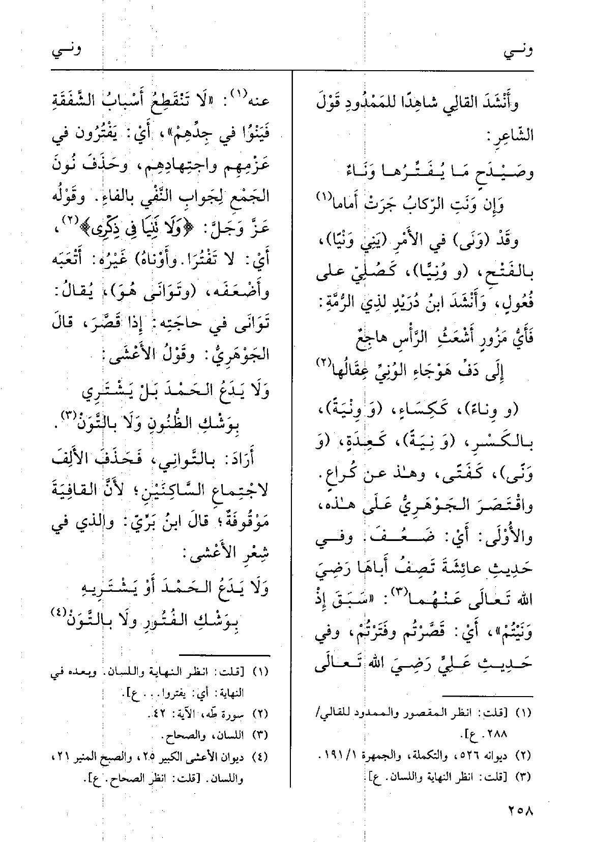 بوَشْكِ الظُّنُونِ وَلَا بالتَّوَنْ أَرادَ {بالتَّوانِي فحذَفَ الألفَ لاجْتِماعِ السَّاكِنَيْن، لأنَّ القافِيَةَ مَوْقوفَةٌ.