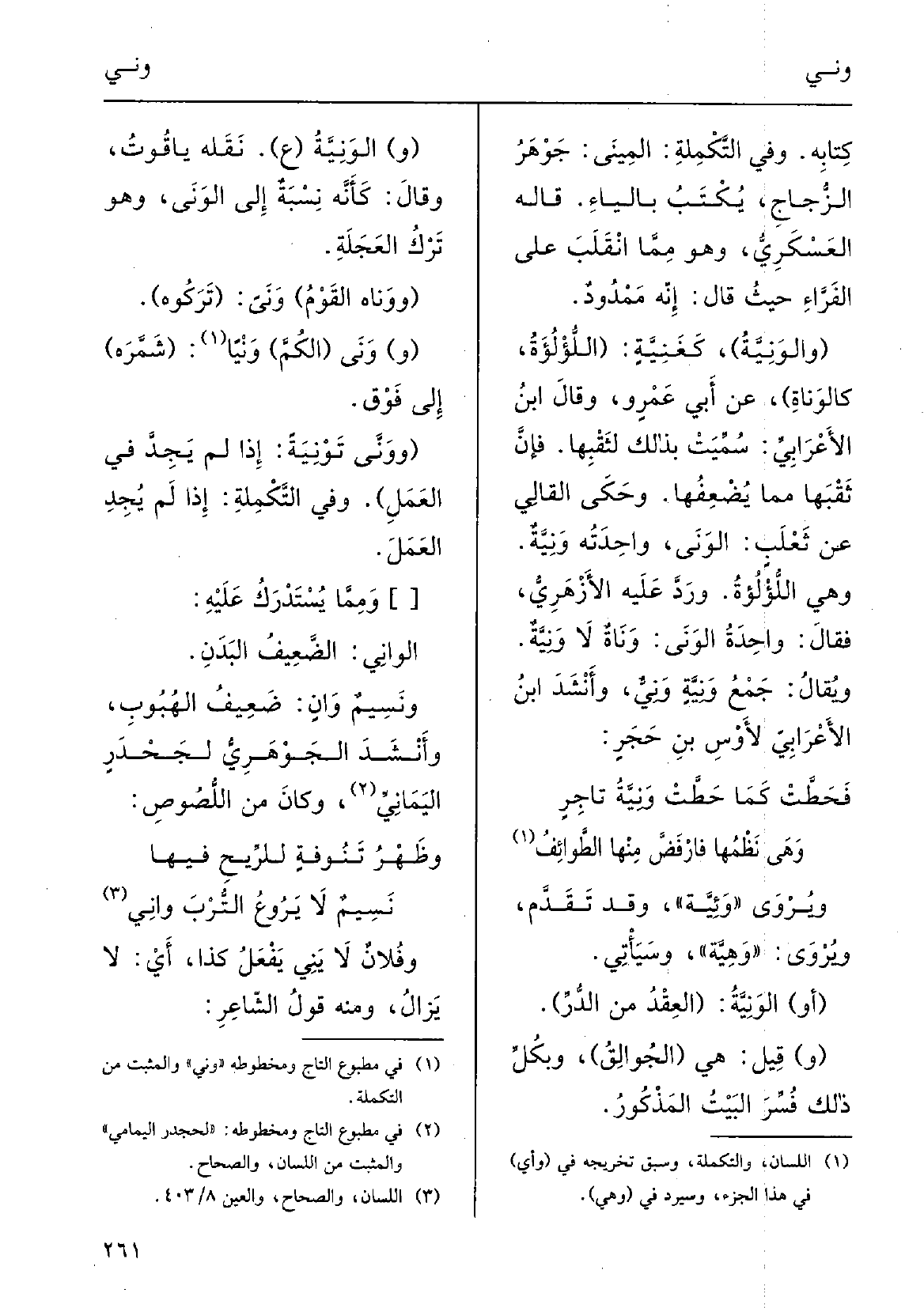وَرَدَّ عَلَيْهِ الأزْهري فقالَ: واحِدَةُ} الوَنَى {وَناةٌ لَا} وَنِيَّةٌ.