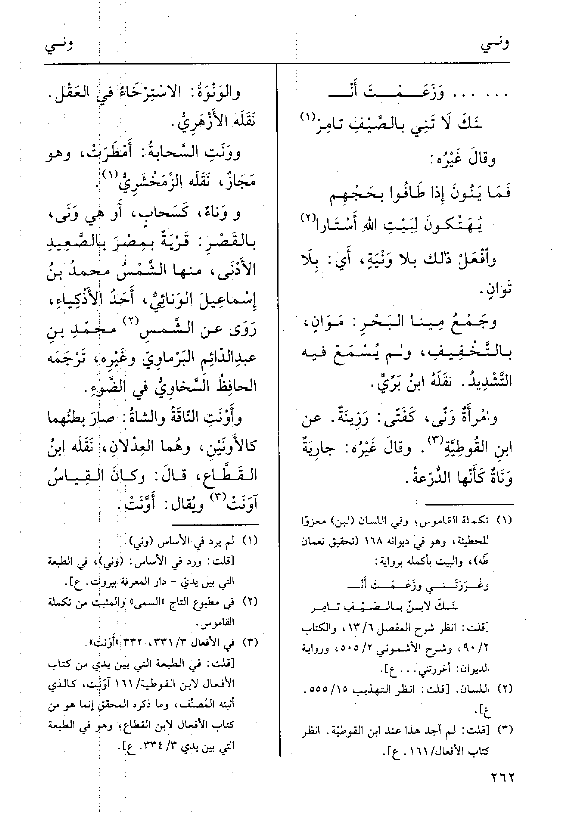 وامرأَةٌ} وَنًى، كفَتًى: رَزِينَةٌ؛ عَن ابْن الْقُوطِيَّة.
