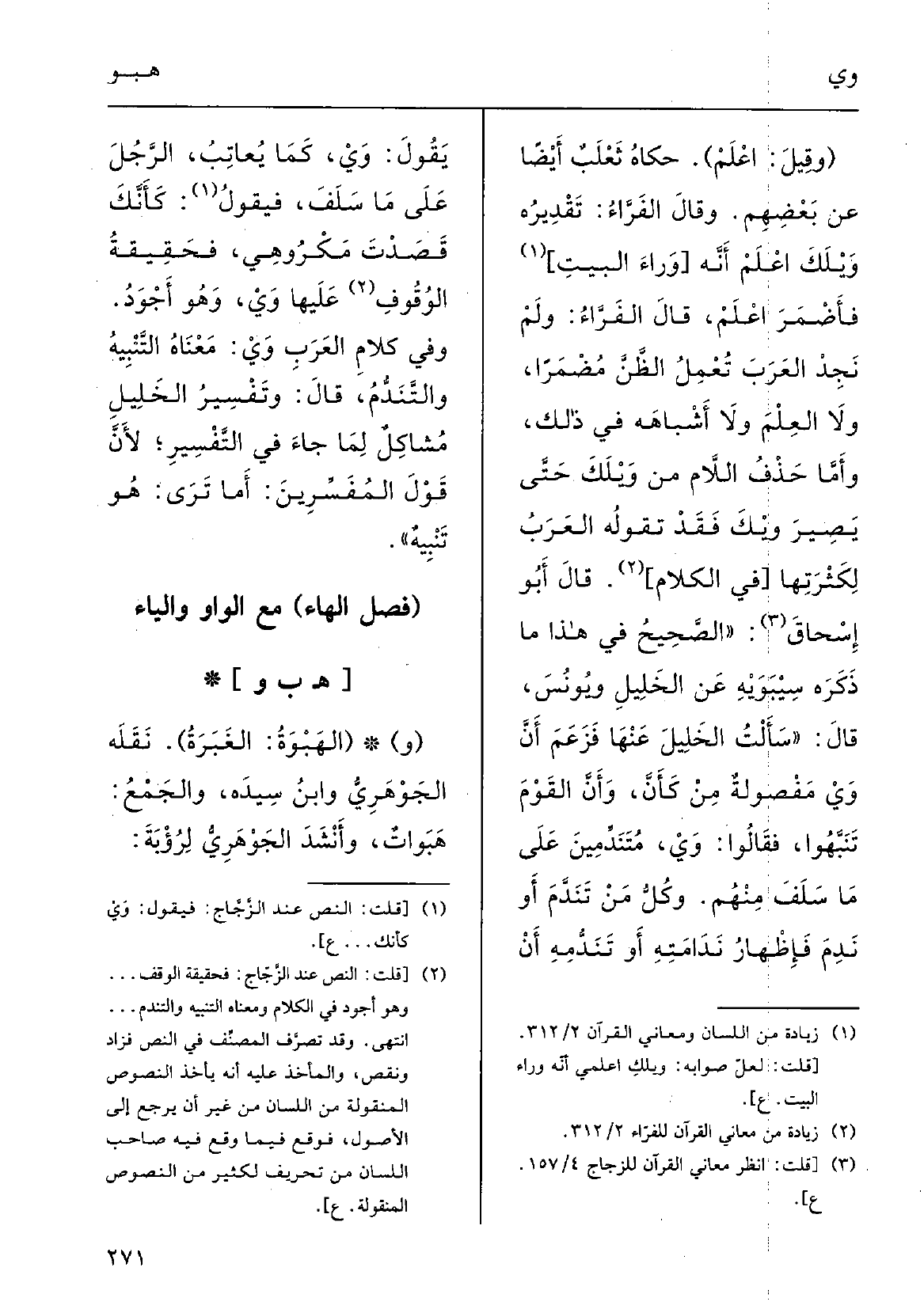 (فصل الْهَاء مَعَ الْوَاو وَالْيَاء)