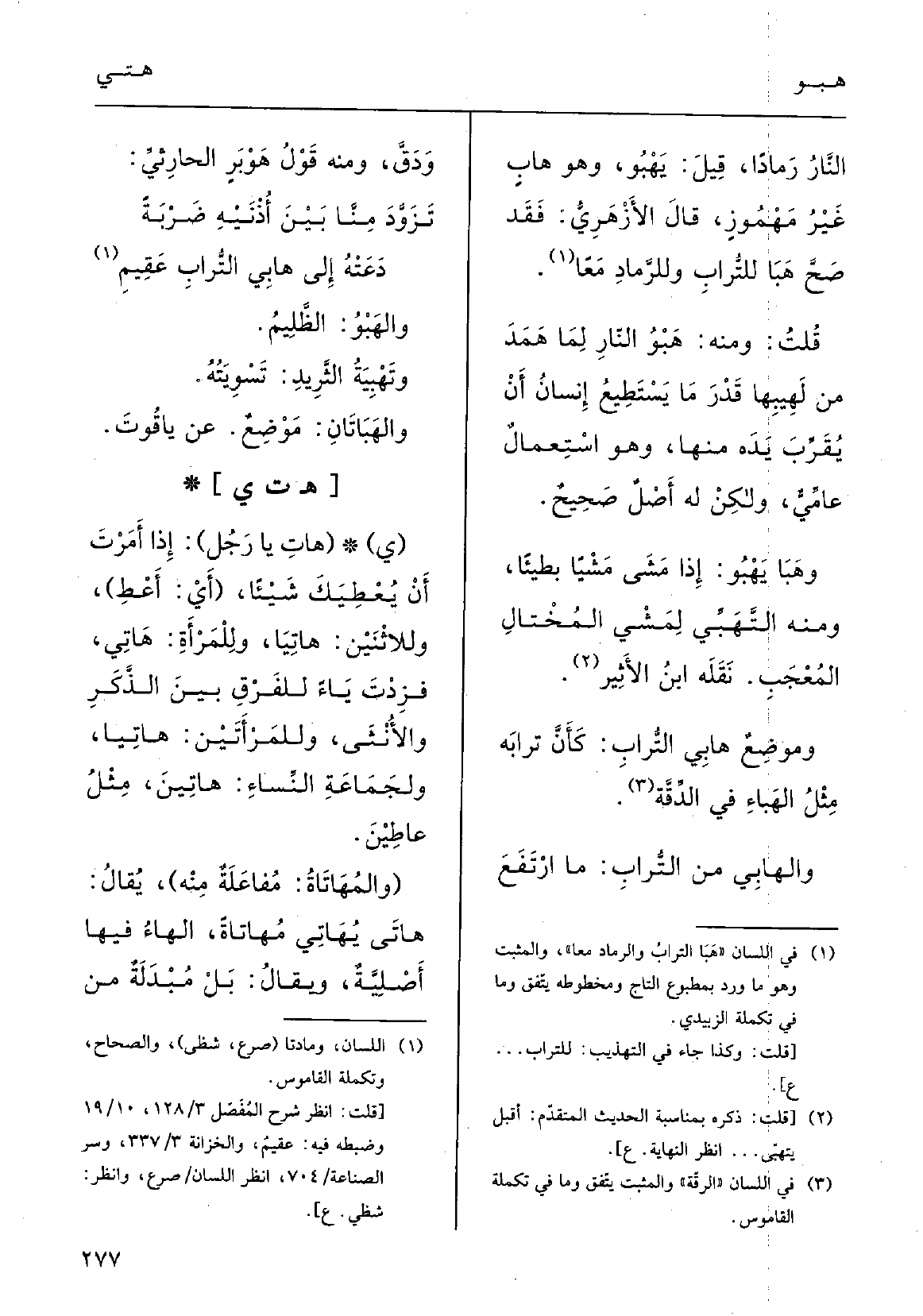 قَالَ الْأَزْهَرِي: فقد صَحَّ {هَبَا للتُّرابِ وللرَّمادِ مَعاً.