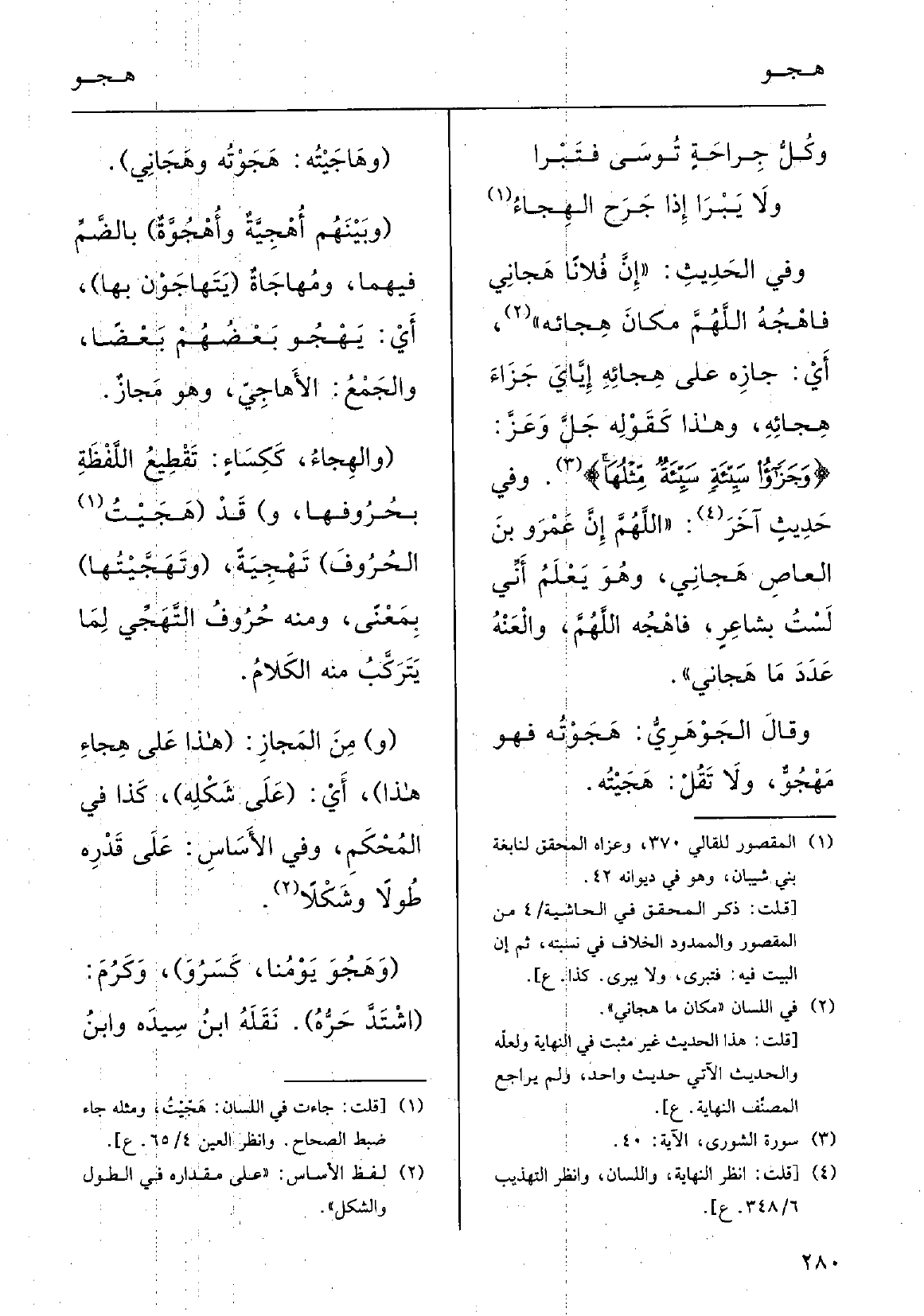 وَلَا يبرا إِذا جَرَحَ {الهِجَاءُ وَفِي الحديثِ: (إنَّ فلَانا} هَجانِي {فاهْجُه اللهُمّ مَكانَ هَجَائي، أَي جازِ على} هِجائِه إيَّايَ جَزاءَ هِجائِه؛ وَهَذَا كَقَوْلِه، جلَّ وعزَّ: {وجَزاءُ سَيِّئَةٍ سَيِّئةٌ مِثْلُها} .
