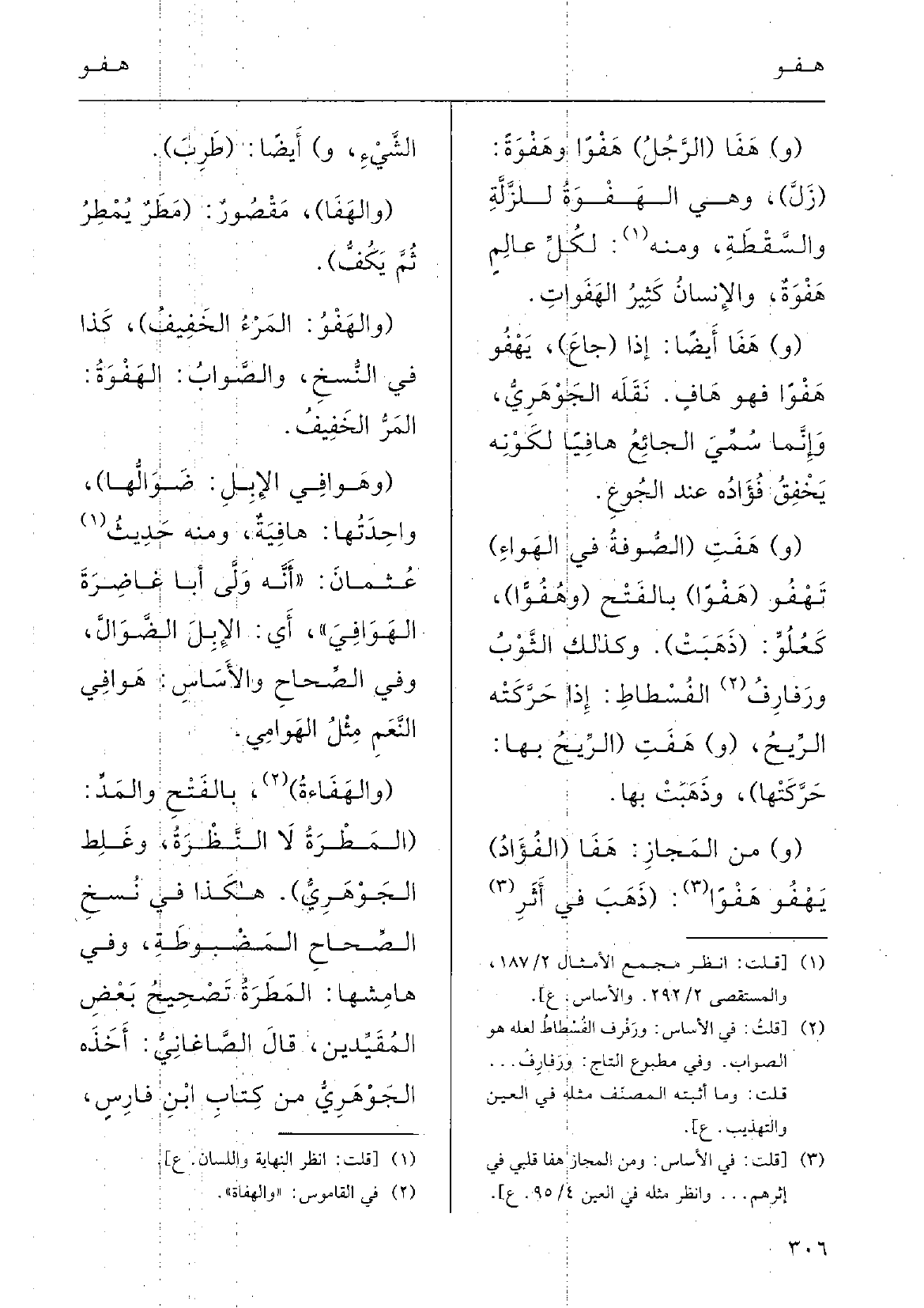 وَفِي الصِّحاح والأساس: هَوافِي النّعَم مِثْلُ الهَوامِي.