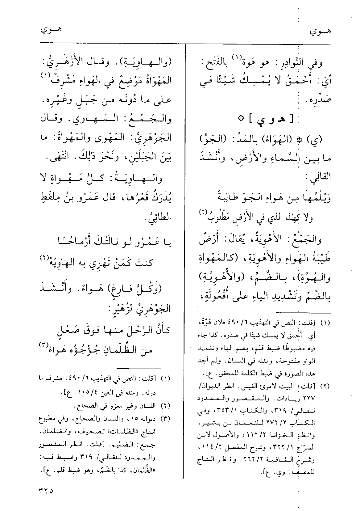 وَلَا كَهَذا الَّذِي فِي الأَرْض مَطْلُوب ُوالجَمْعُ} الأَهْوِيةُ. يقالُ: أَرضٌ طيِّبَةُ الهَواءِ {والأَهْوِيةِ (} كالمَهْواةِ {والهُوَّةِ) ، بِالضَّمِّ، (} والأُهْوِيَّةِ) ، بِالضَّمِّ وتَشْديدِ الياءِ على أُفْعُولةٍ، ( {والهاوِيَةِ) .