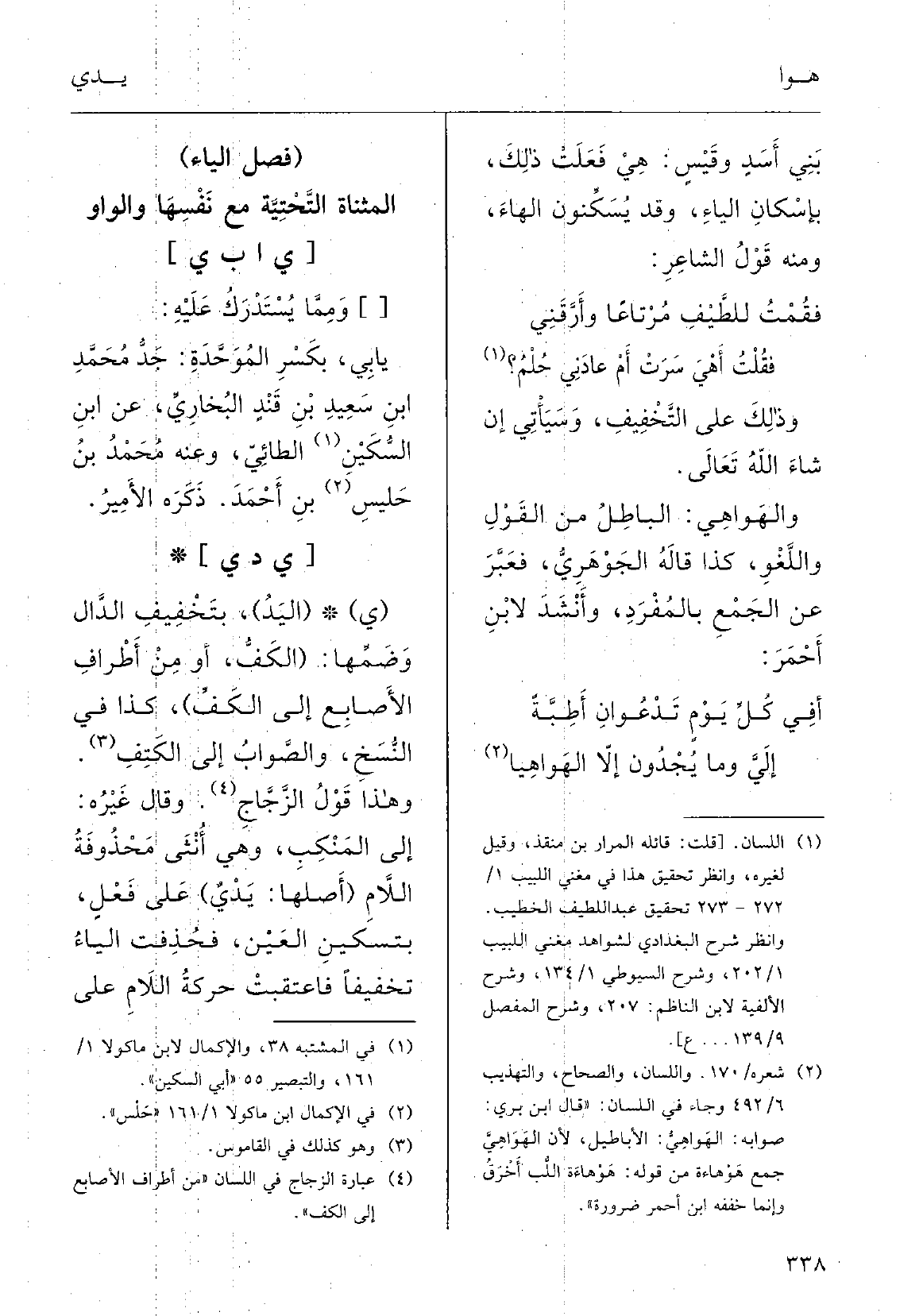 إليَّ وَمَا يُجْدُونَ إلاَّ} الهَواهِيا؟ [با] فصل الْيَاء الْمُثَنَّاة التَّحْتِيَّة مَعَ نَفسهَا وَالْوَاو)