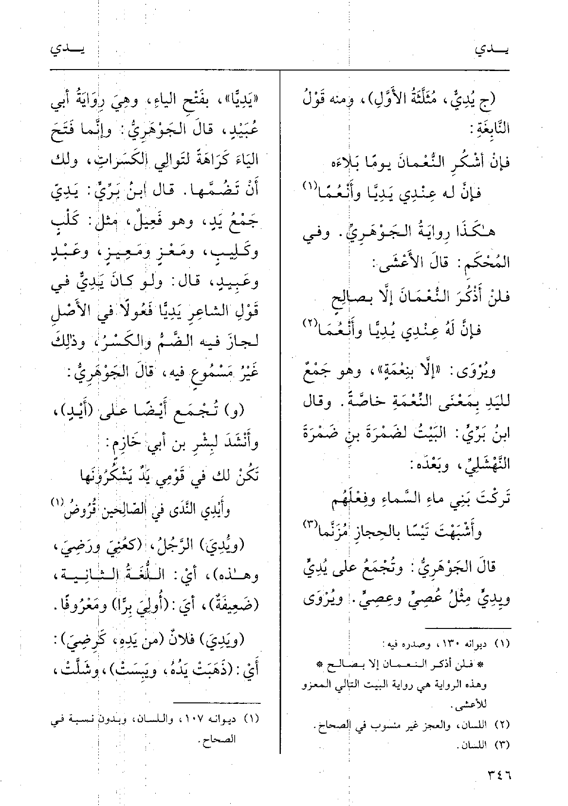 فإنَّ لَهُ عنْدِي} يُدِيًّا وأَنْعُماهكذا رِوايَةُ الجَوْهري.