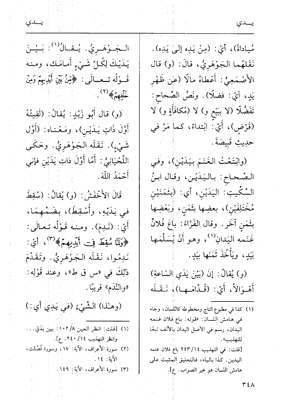 (وابْتَعْتُ الغَنَمَ بيَدَيْنِ) ؛ فِي الصِّحاح: باليَدَيْنِ.