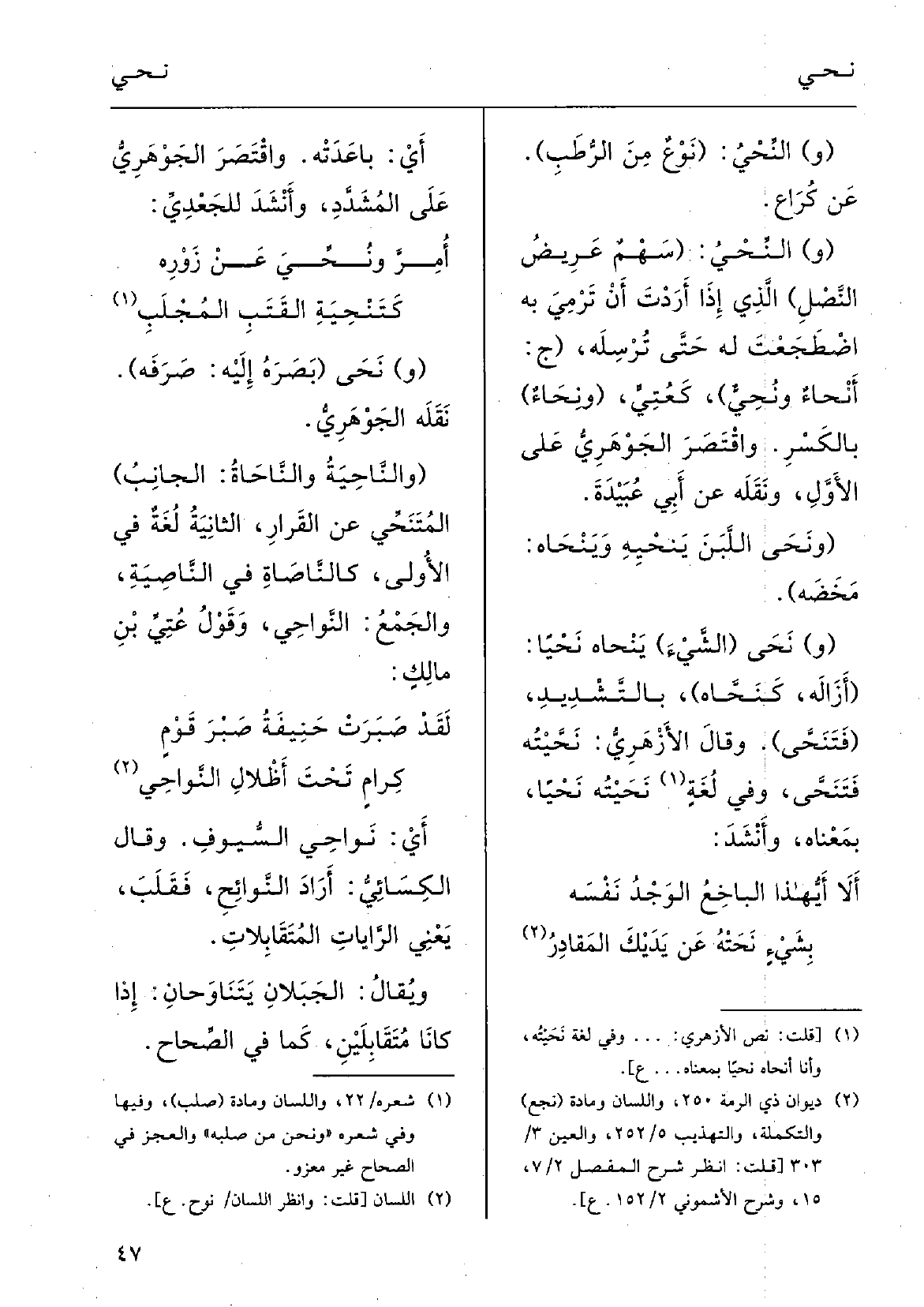 وَقَالَ الأزْهرِي:} نَحَيْتُه {فَتَنَحَّى، وَفِي لُغَةٍ} نَحَيْتُه {نَحْياً بمعْناهُ؛ وأَنْشَدَ: