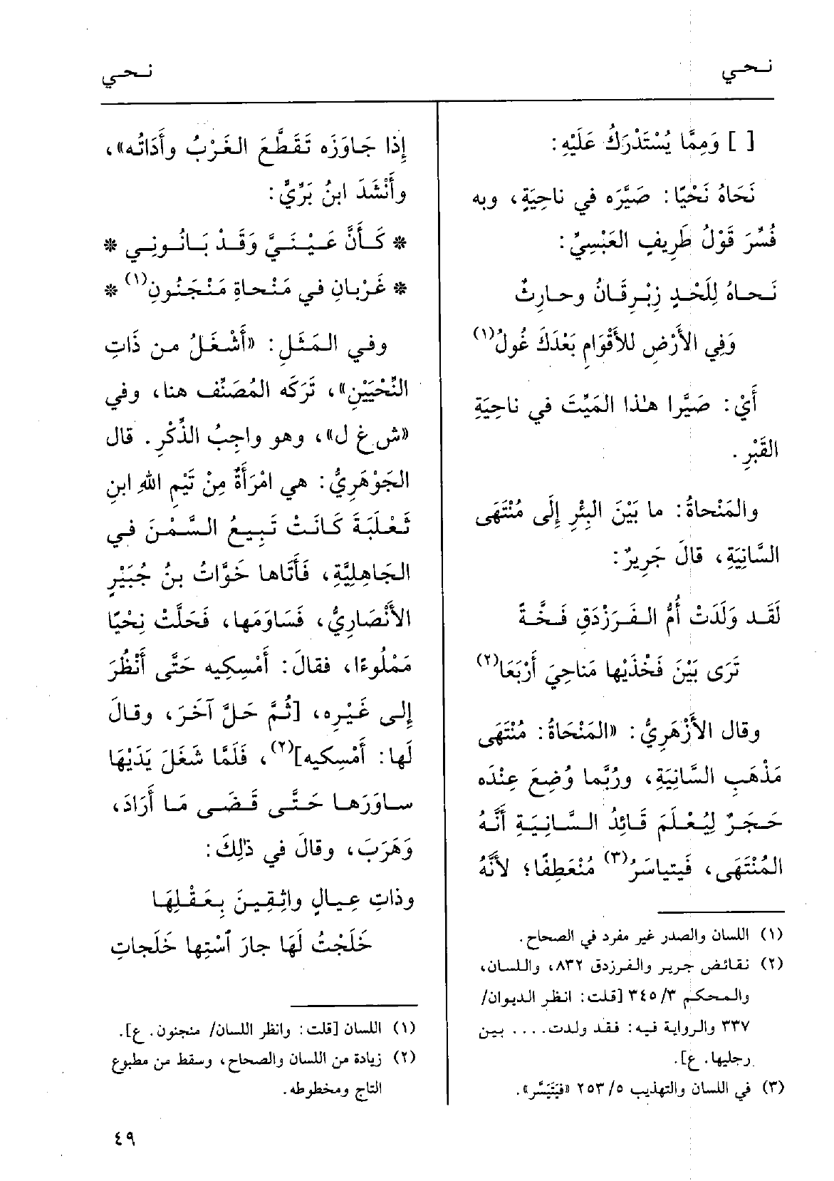 غَرْبانِ فِي مَنْحاةِ مَنْجنُونِوفي المَثَل: أَشْغَلُ مِن ذاتِ} النِّحْيَيْنِ؛ تَركَهُ المصنِّفُ هُنَا وَفِي شغل، وَهُوَ واجبُ الذِّكْر.