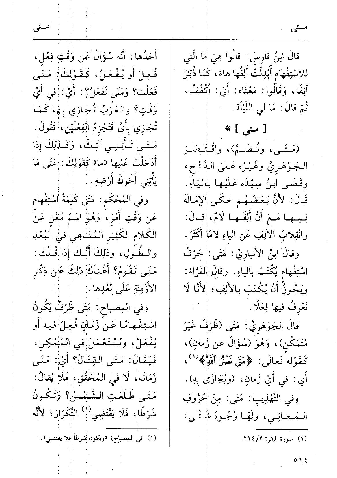 وَقَالَ ابنُ الأنْبارِي: مَتَى حَرْفُ اسْتِفْهامٍ يُكْتَبُ بالياءِ.