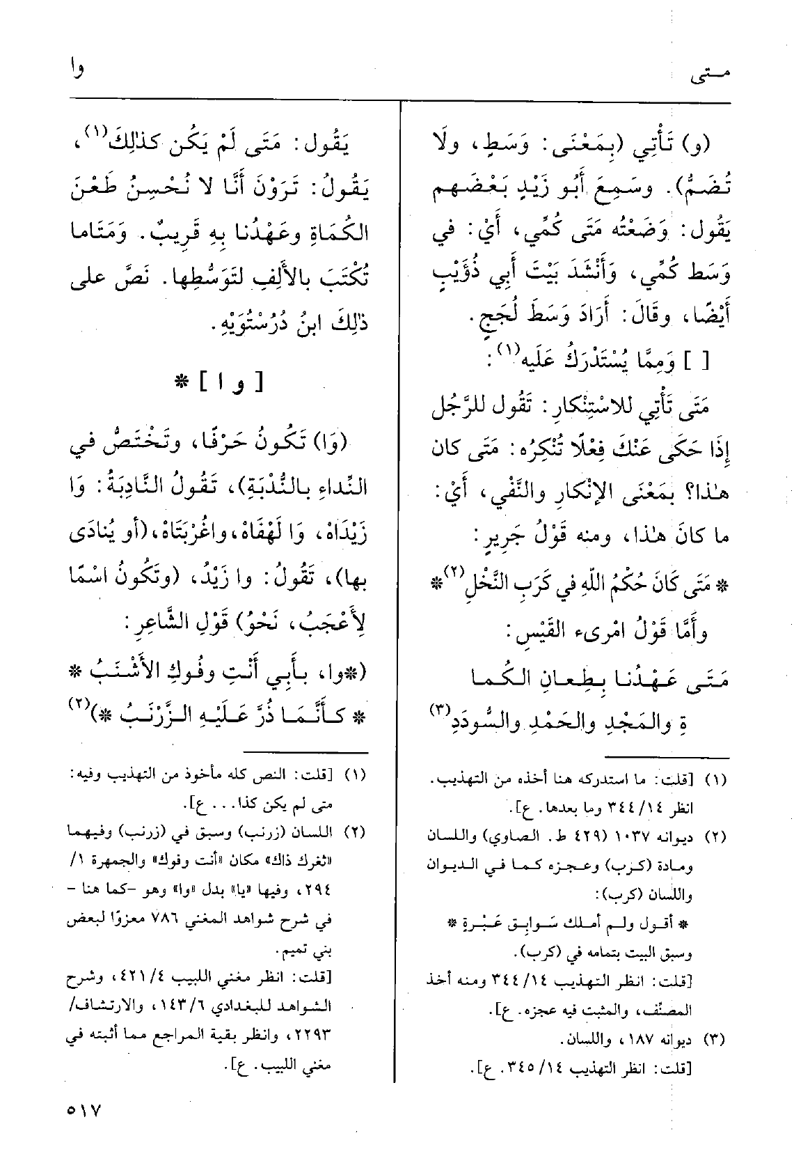 ومَتَا مَا تُكْتَبُ بالألِفِ لتَوَسّطِها، نَصَّ على ذلكَ ابنُ درسْتوَيْه.