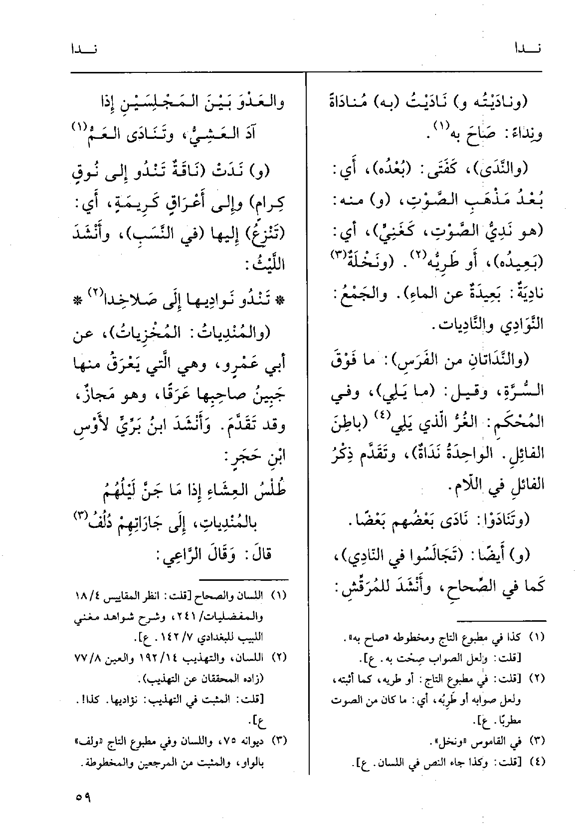 آدَ العَشِيُّ {وتَنادَى العَمّ (و) } نَدَت (ناقةٌ {تَنْدُو إِلَى نُوقٍ كِرامٍ) وَإِلَى أعْراقٍ كَرِيمةٍ: أَي (تَنْزِعُ) إِلَيْهَا (فِي النَّسَبِ) ؛ وأَنْشَدَ اللّيْث: