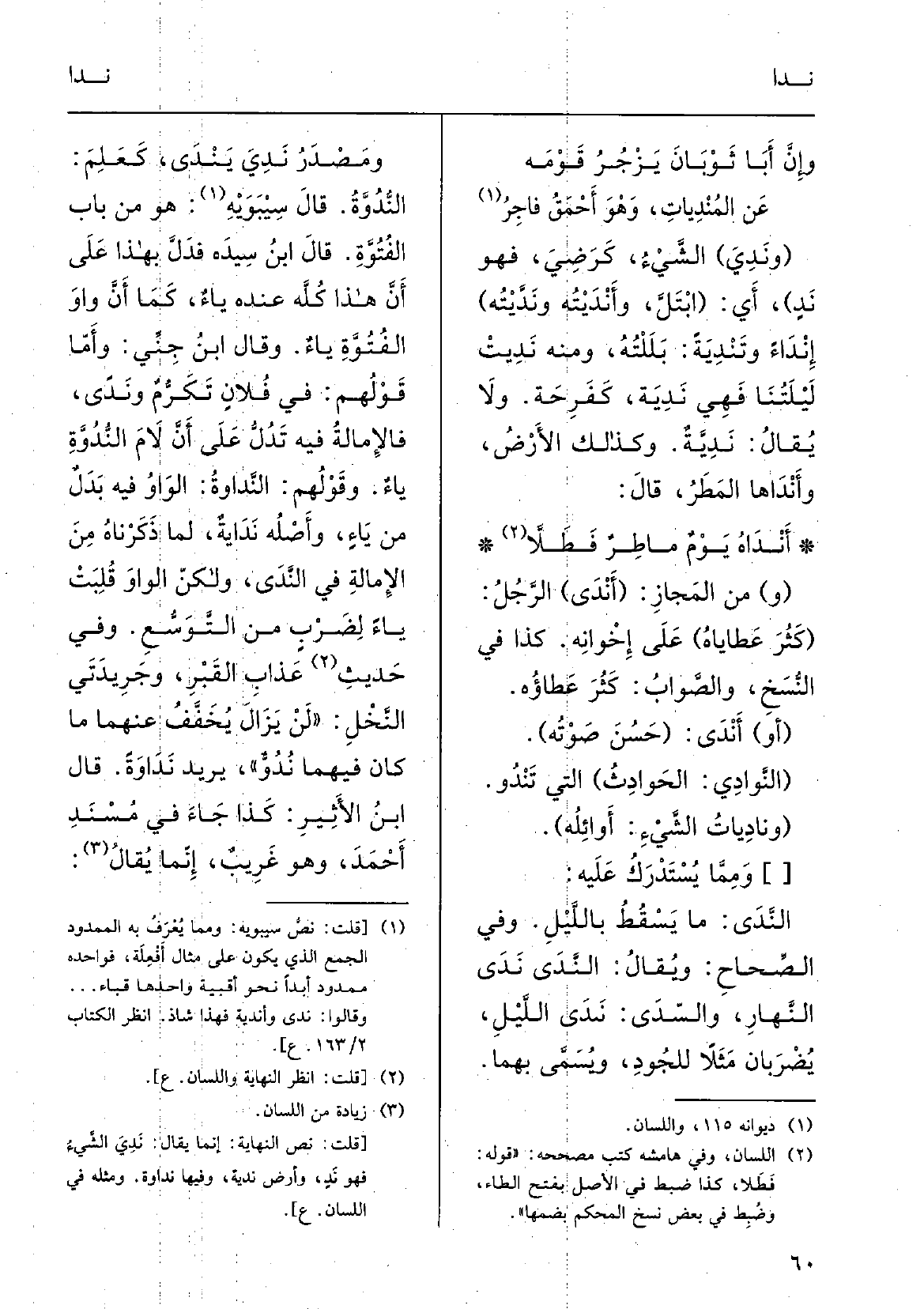 ومَصْدرُ نَدِيَ يَنْدَى، كعَلِمَ، {النُّدُوَّةُ. قالَ سيبويهِ: هُوَ من بابِ الفُتُوَّةِ.