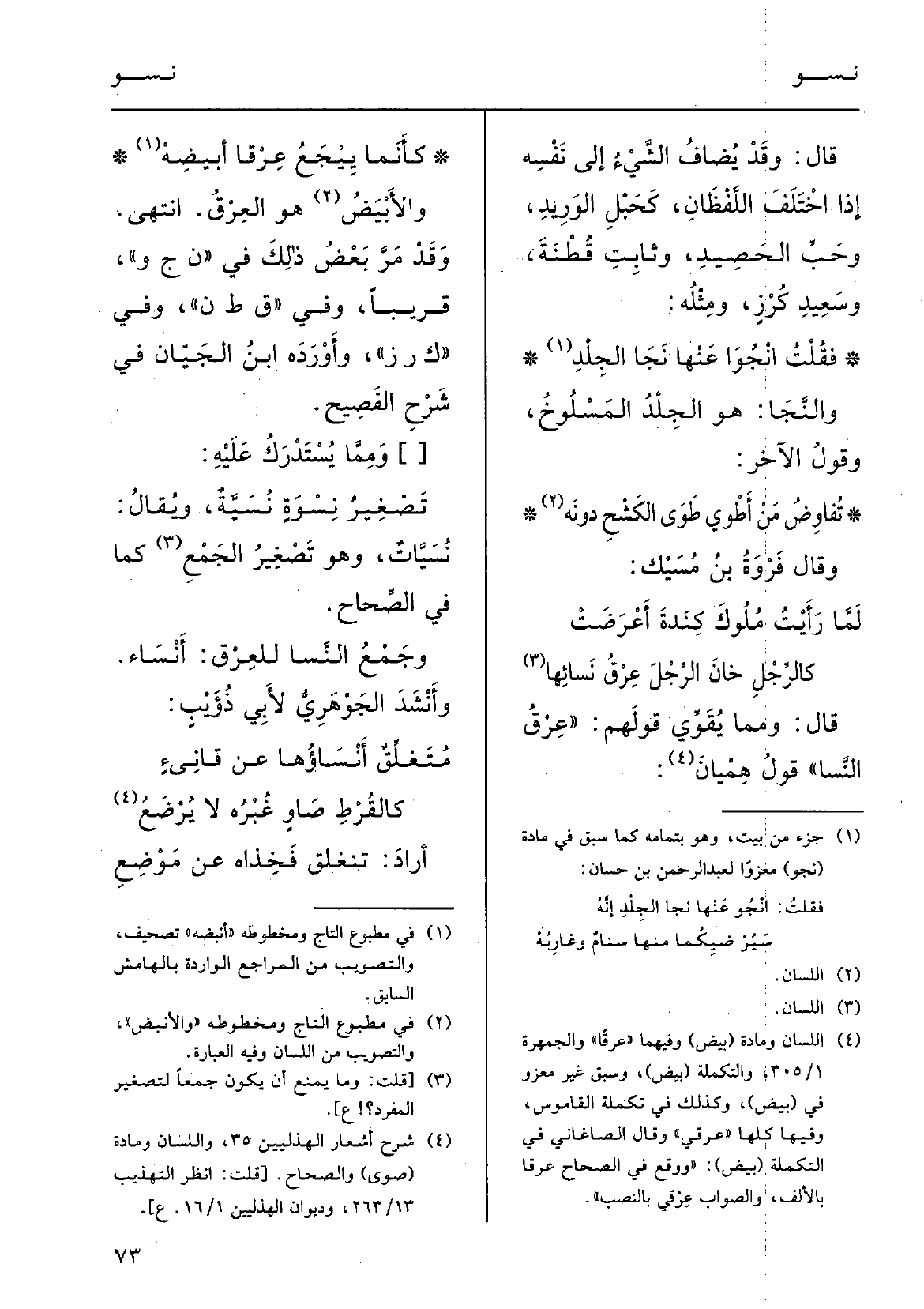 وَقد مَرَّ بعضُ ذلكَ فِي نجو قرِيباً، وَفِي قطن، وَفِي كرز، وأوْرَدَه ابنُ الجيان فِي شرْحِ الفصيح.