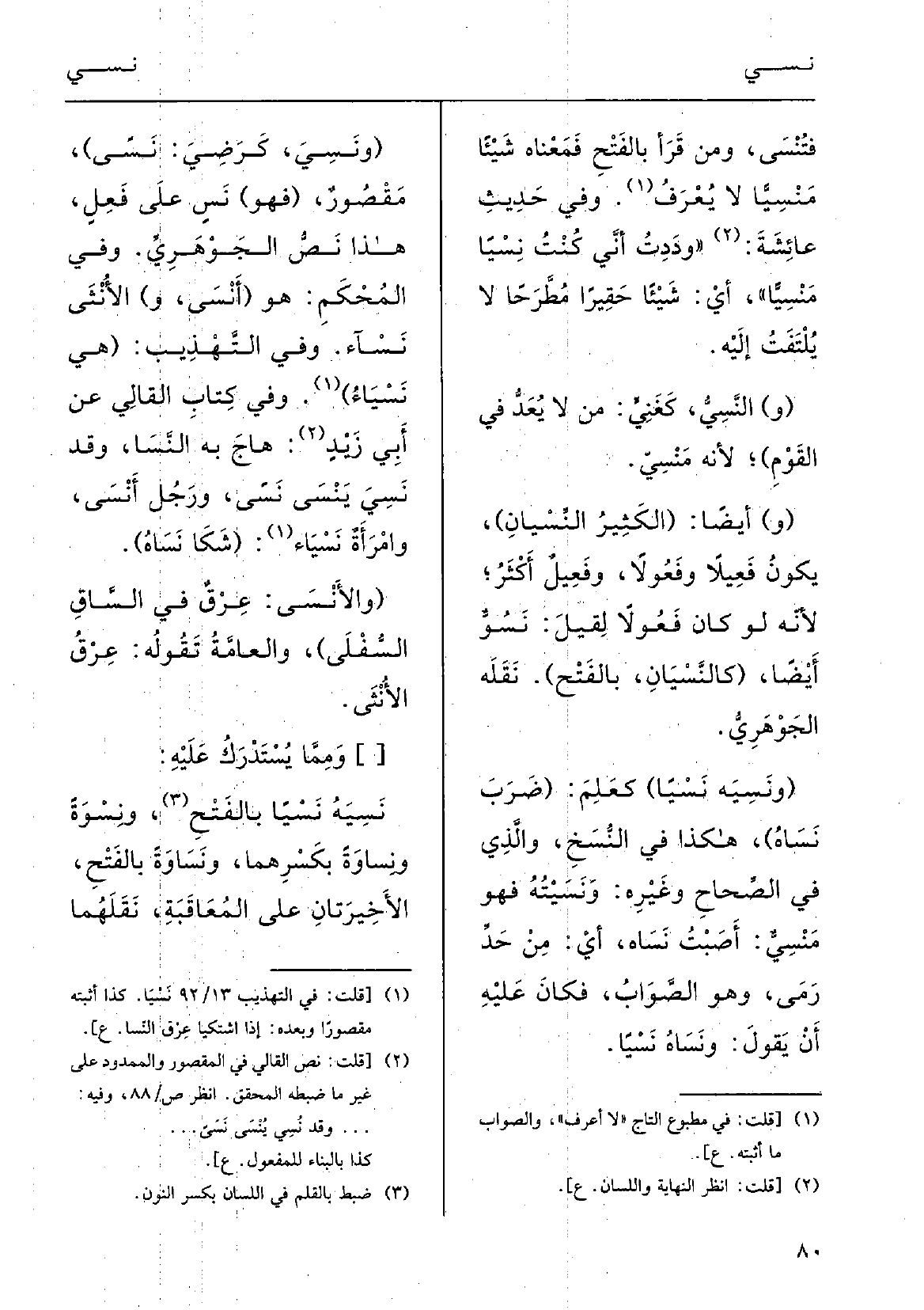 (} كالنَّسْيانِ، بِالْفَتْح) ؛ نقلَهُ الجَوْهرِي.