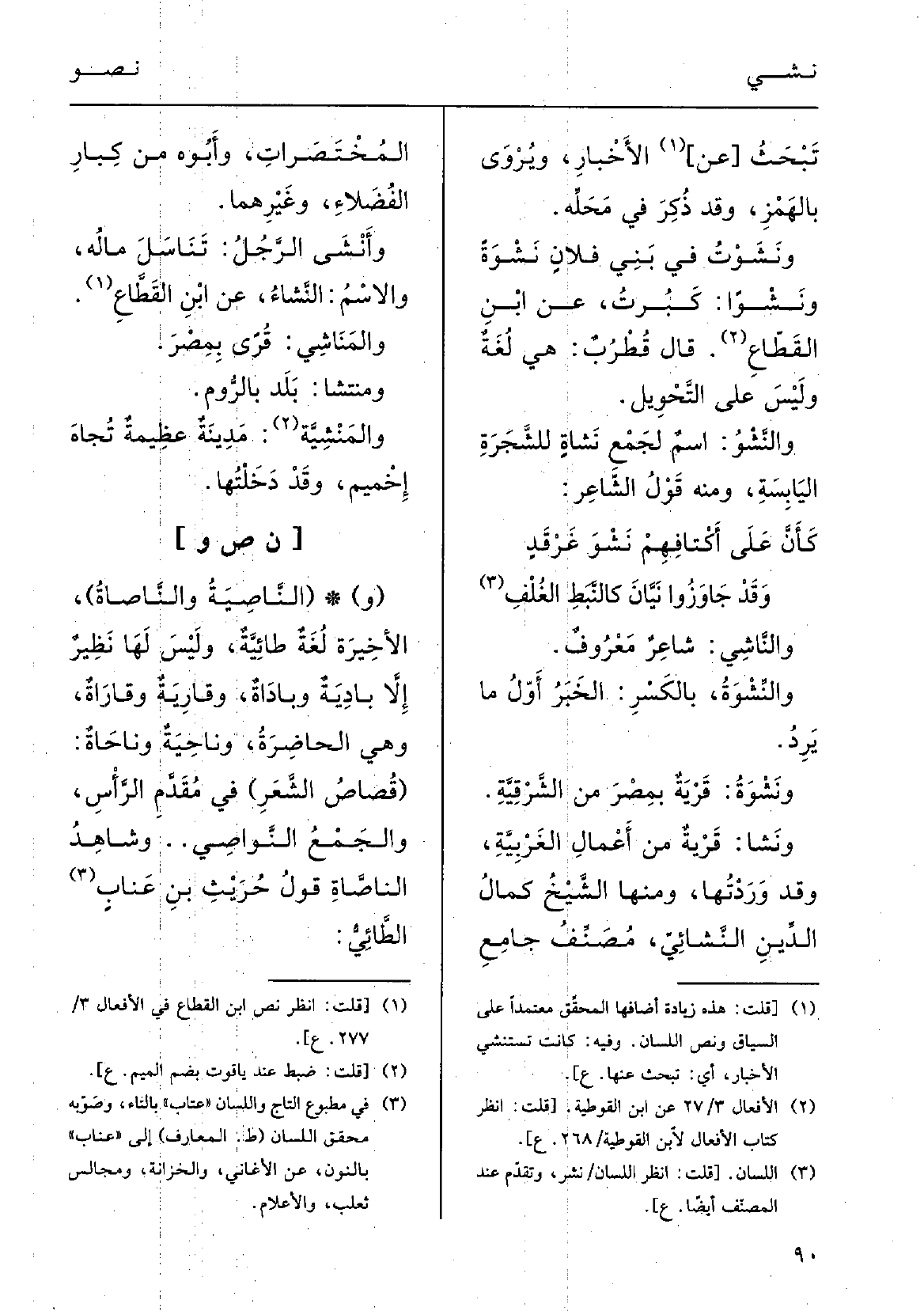{وَنَشا: قَرْيةٌ مِن أَعْمالِ الغَربيةِ وَقد وَرَدْتُها، وَمِنْهَا الشيخُ كمالُ الدِّينْ} النّشائيُّ مُصنِّفُ جامِعِ المُخْتَصَرات، وأَبُوه مِن كبارِ الفُضَلاءِ وغيرُهُما.