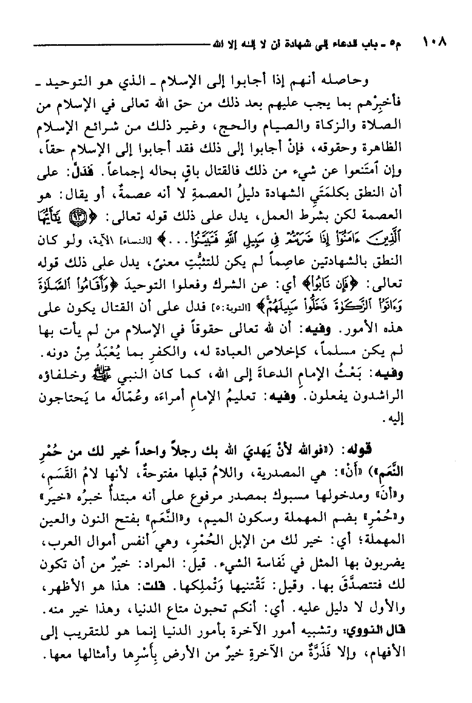 قوله: "فوالله لأن يهدي الله بك رجلاً واحدًا خير لك من حمر النعم"3 أن: هي المصدرية، واللام قبلها مفتوحة، لأنها لام القسم، ومدخولها مسبوك بمصدر مرفوع على أنه مبتدأ خبره " خير ".