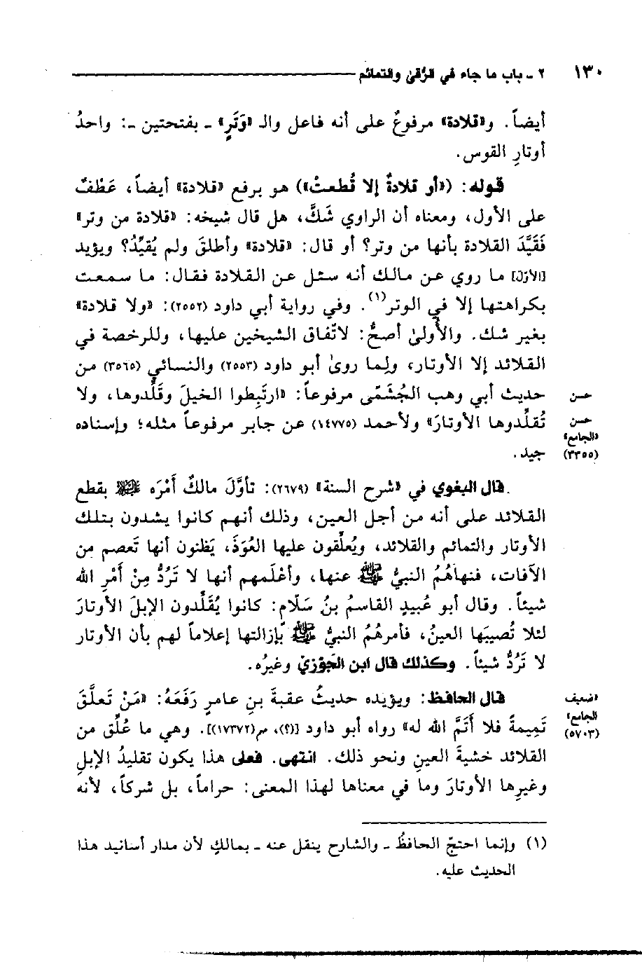 1 ذكر ذلك في كتاب الجهاد باب قطع القلائد والأوتار 11/ 27. وشرح السنة من أعظم الكتب في بابه, وقد شرفنا الله بخدمته وطبعه في 16 مجلدا مع الفهارس المسهلة, ولله الحمد والمنة.