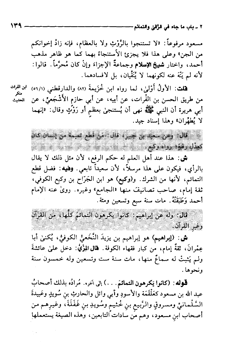 مسعود مرفوعًا: "لا تستنجوا بالروث ولا بالعظام، فإنه زاد إخوانكم من الجن" 1. وعلى هذا فلا يجزئ الاستنجاء بهما كما هو ظاهر مذهب أحمد، واختار شيخ الإسلام وجماعة الإجزاء وإن كان محرمًا.