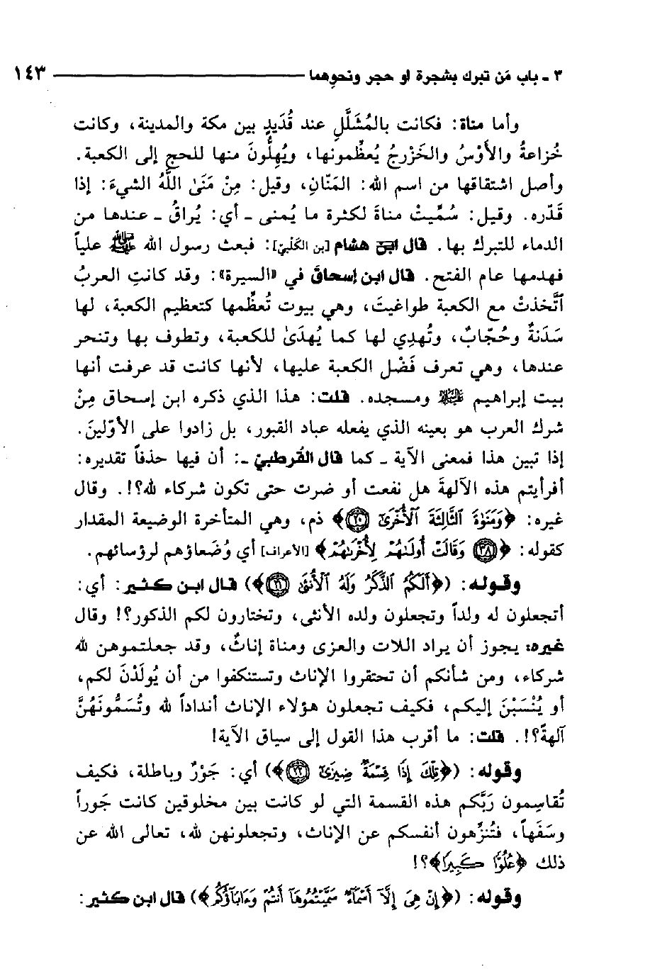 قلت: هذا الذي ذكره ابن إسحاق من شرك العرب هو بعينه الذي يفعله عباد القبور، بل زادوا على الأولين.