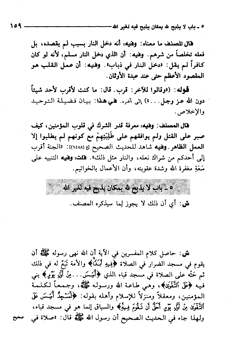 [5- باب لا يذبح لله بمكان يذبح فيه لغير الله]