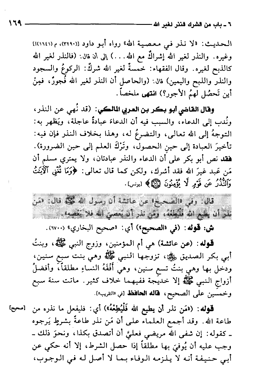 قال: وفي " الصحيح " " عن عائشة أن رسول الله صلى الله عليه وسلم قال: "من نذر أن يطيع الله فليطعه، ومن نذر أن يعصي الله فلا يعصه " 3.