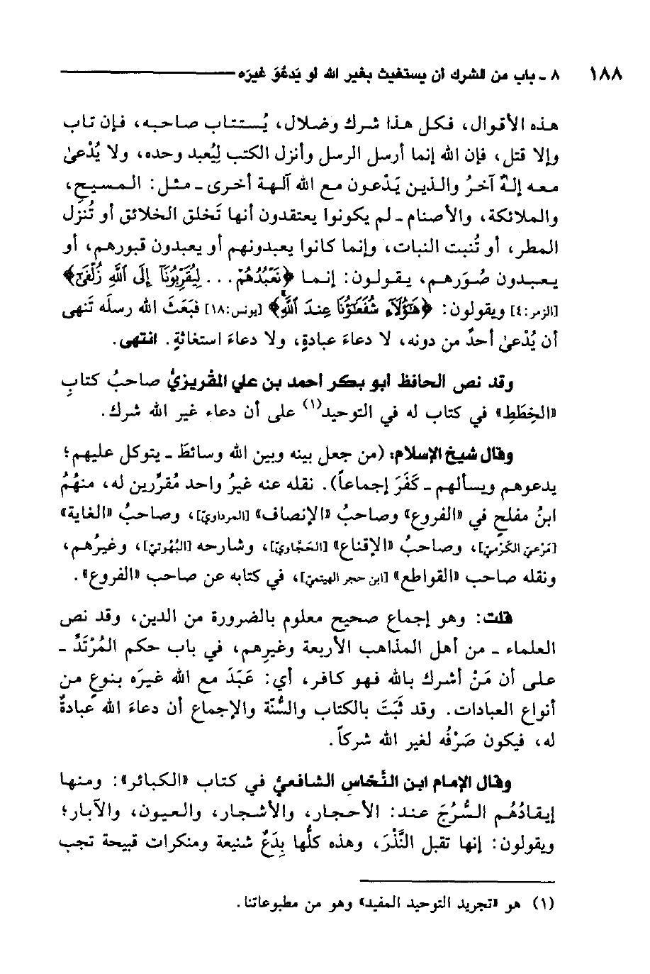 وقد نص الحافظ أبو بكر أحمد بن علي المقريزي صاحب كتاب "الخطط" في كتاب له في التوحيد على أن دعاء غير الله شرك.