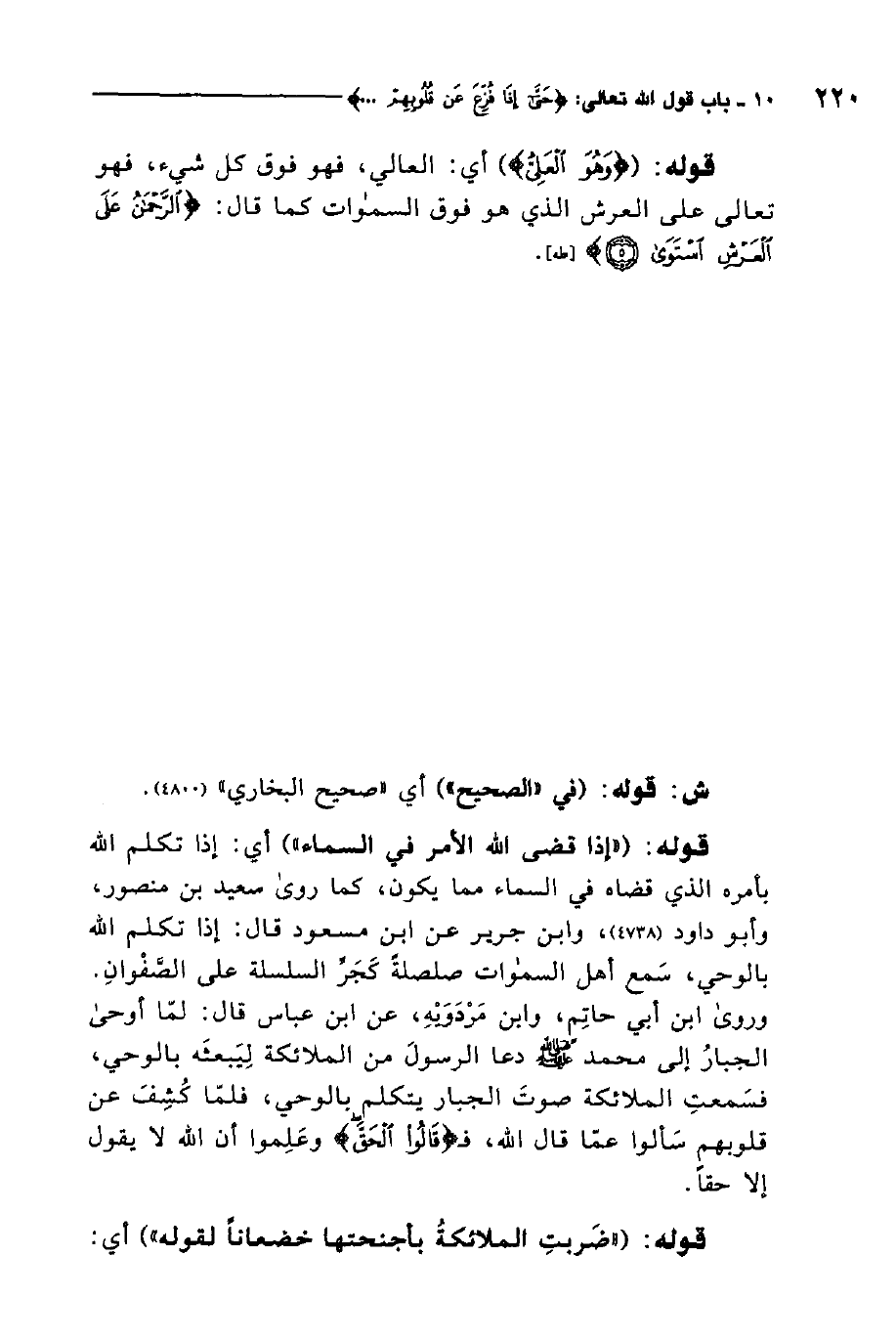 قال: في "الصحيح" عن أبي هريرة عن النبي صلى الله عليه وسلم قال: "إذا قضى الله الأمر في السماء ضربت الملائكة بأجنحتها خضعانًا لقوله. كأنه سلسلة على صفوان ينفذهم ذلك {حَتَّى إِذَا فُزِّعَ عَنْ قُلُوبِهِمْ قَالُوا مَاذَا قَالَ رَبُّكُمْ قَالُوا الْحَقَّ وَهُوَ الْعَلِيُّ الْكَبِيرُ} 2 فيسمعها مسترق السمع، ومسترق السمع هكذا بعضه فوق بعض" وصفه سفيان بكفه فحرقها وبدد بين أصابعه، فيسمع الكلمة فيلقيها إلى مَنْ تحته، ثم يلقيها الآخر إلى مَنْ تحته، حتى يلقيها على لسان الساحر والكاهن فربما أدركه الشهاب قبل أن يلقيها وربما ألقاها قبل أن يدركه، فيكذب معها مائة كذبة، فيقال: أليس قد قال لنا يوم كذا وكذا، فيصدق بتلك الكلمة التي سمعت من السماء"