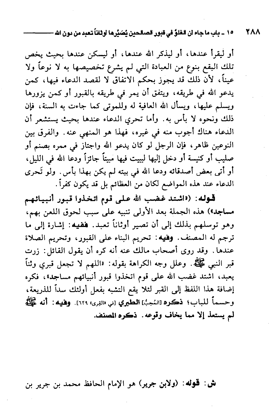 قوله: "اشتد غضب الله على قوم اتخذوا قبور أنبيائهم مساجد" 1 هذه الجملة بعد الأولى تنبيه على سبب لحوق اللعن بهم، وهو توسلهم بذلك إلى أن تصير أوثانًا تعبد. ففيه إشارة إلى ما ترجم له المصنف، وفيه تحريم البناء على القبور، وتحريم الصلاة عندها.
