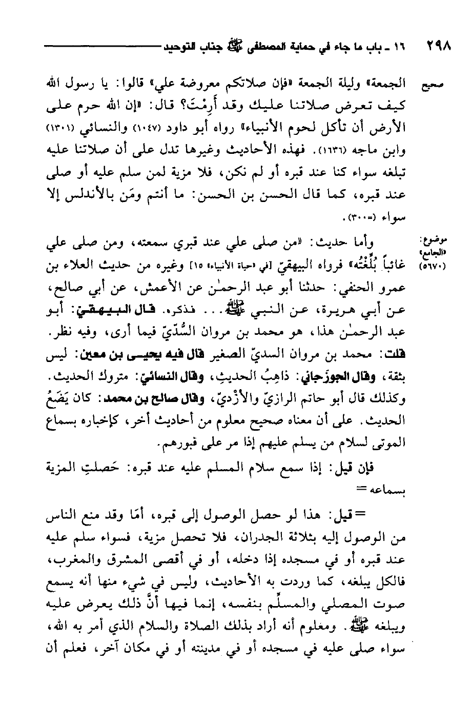 فهذه الأحاديث وغيرها تدل على أن صلاتنا عليه تبلغه سواء كنا عند قبره أو لم نكن، فلا مزية لمن سلم عليه أو صلى عند قبره، كما قال الحسن بن الحسن: ما أنتم ومن بالأندلس إلا سواء.