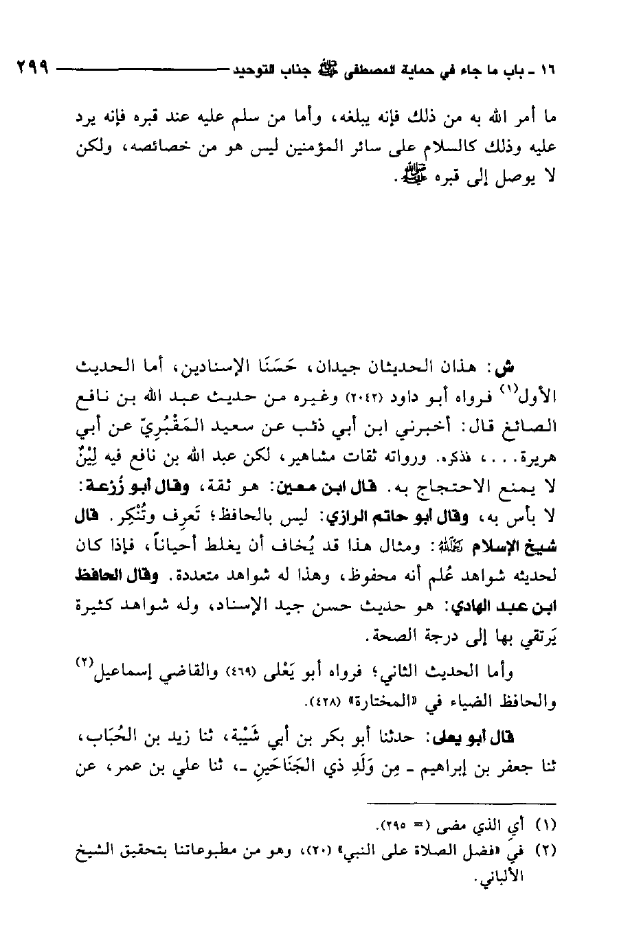 ش: هذان الحديثان جيدان، حسنا الإسنادين، أما الحديث الأول فرواه أبو داود وغيره من حديث عبد الله بن نافع الصائغ قال: أخبرني ابن أبي ذئب عن سعيد المقبري عن أبي هريرة ... فذكره. ورواته ثقات مشاهير، لكن عبد الله بن نافع فيه لين لا يمنع الاحتجاج به. قال ابن معين: هو ثقة، وقال أبو زرعة: لا بأس به. وقال أبو حاتم الرازي: ليس بالحافظ تعرف وتنكر. قال شيخ الإسلام رحمه الله: ومثال هذا قد يخاف أن يغلط أحيانًا، فإذا كان لحديثه شواهد علم أنه محفوظ، وهذا له شواهد متعددة.