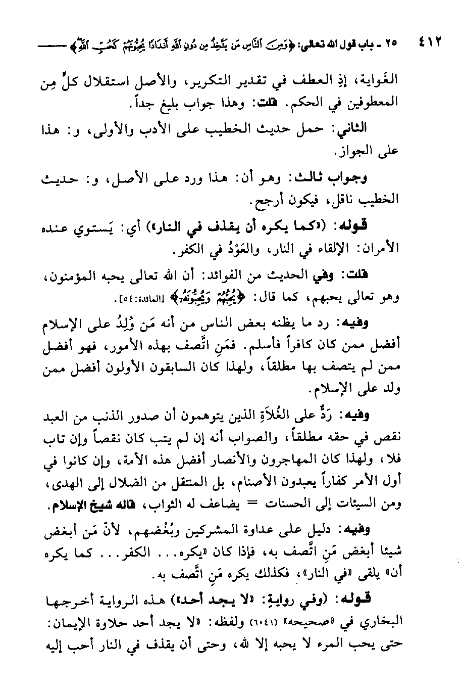 وفيه رد على الغلاة الذين يتوهمون أن صدور الذنب من العبد نقص في حقه مطلقًا، والصواب أنه إن لم يتب كان نقصًا وإن تاب فلا، ولهذا كان المهاجرون والأنصار أفضل هذه الأمة، وإن كانوا في أول الأمر كفارًا يعبدون الأصنام، بلا المنتقل من الضلال إلى الهدى، ومن السيئات إلى الحسنات يضاعف له الثواب، قاله شيخ الإسلام.