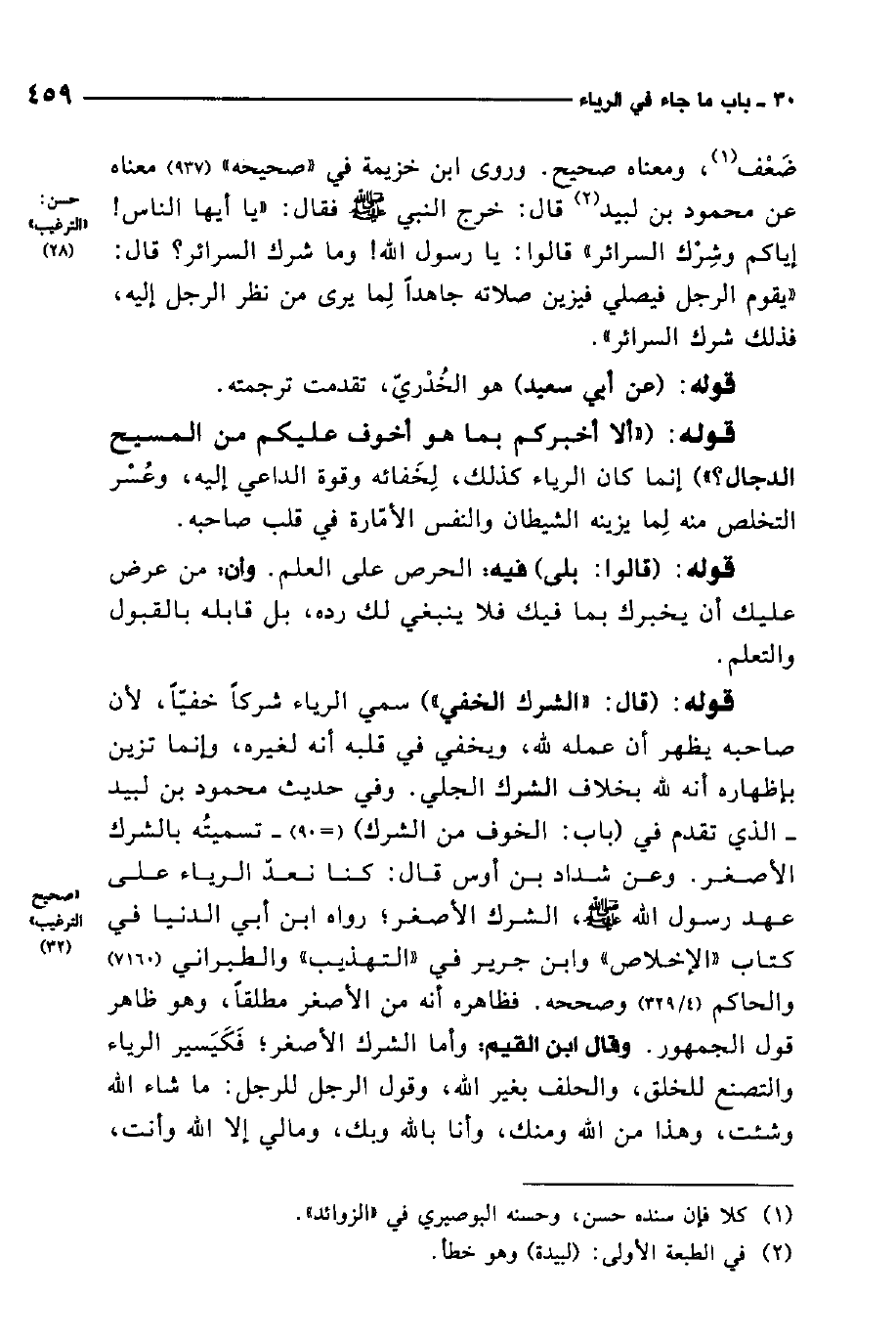 قوله: "ألا أخبركم بما هو أخوف عليكم من المسيح الدجال؟ " إنما كان الرياء كذلك، لخفائه وقوة الداعي إليه، وعسر التخلص منه لما يزينه الشيطان، والنفس الأمارة في قلب صاحبه.