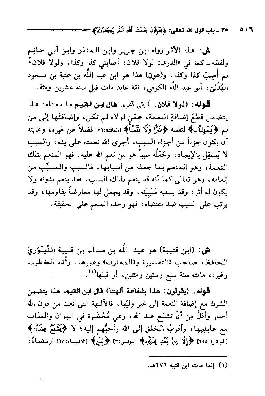 ش: ابن قتيبة هو عبد الله بن مسلم بن قتيبة الدينوري الحافظ، صاحب التفسير والمعارف وغيرها. وثقه الخطيب وغيره، مات سنة سبع وستين ومائتين. أو قبلها.