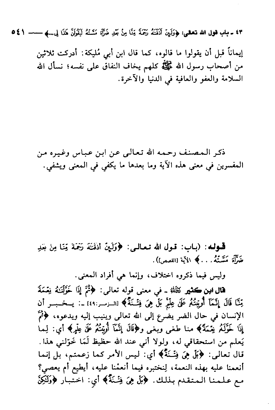 [43- باب قول الله تعالى: {وَلَئِنْ أَذَقْنَاهُ رَحْمَةً مِنَّا مِنْ بَعْدِ ضَرَّاءَ مَسَّتْهُ لَيَقُولَنَّ هَذَا لِي ... } 1]