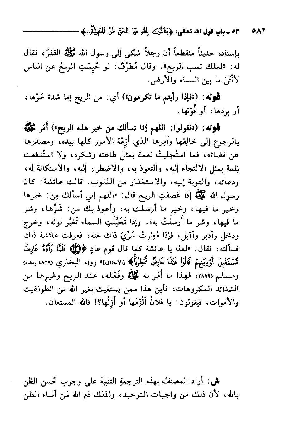 ش: أراد المصنف بهذه الترجمة التنبيه على وجوب حسن الظن بالله، لأن ذلك من واجبات التوحيد، ولذلك ذم الله من أساء الظن