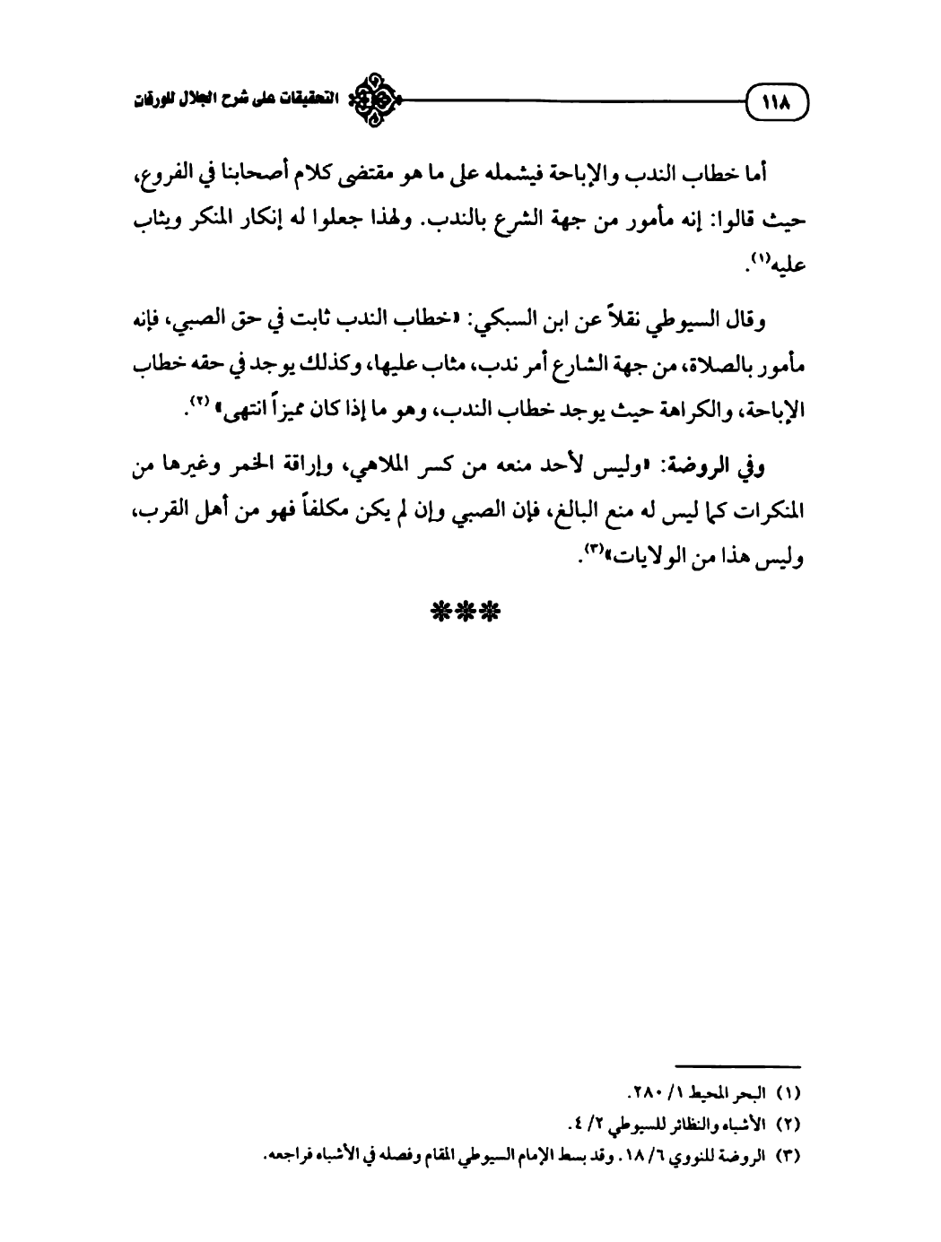 (¬٣) الروضة للنووي ٦/ ١٨. وقد بسط الإمام السيوطي المقام وفصله في الأشباه فراجعه.