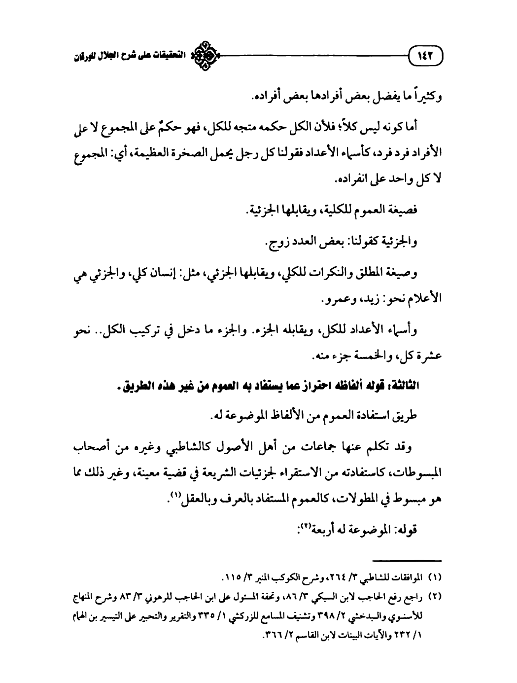 (¬٢) راجع رفع الحاجب لابن السبكي ٣/ ٨٦، وتحفة المسئول على ابن الحاجب للرهوني ٣/ ٨٣ وشرح المنهاج للأسنوي والبدخشي ٢/ ٣٩٨ وتشنيف المسامع للزركشي ١/ ٣٣٥ والتقرير والتحيير على التيسير بن الهمام ١/ ٢٣٢ والآيات البينات لابن القاسم ٢/ ٣٦٦.