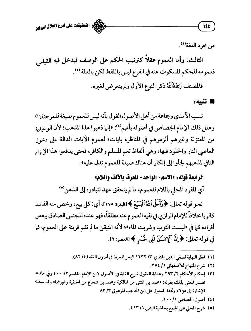 (¬٥) شرح المحلى على الجمع بحاشية البناني ١/ ٤١٣.