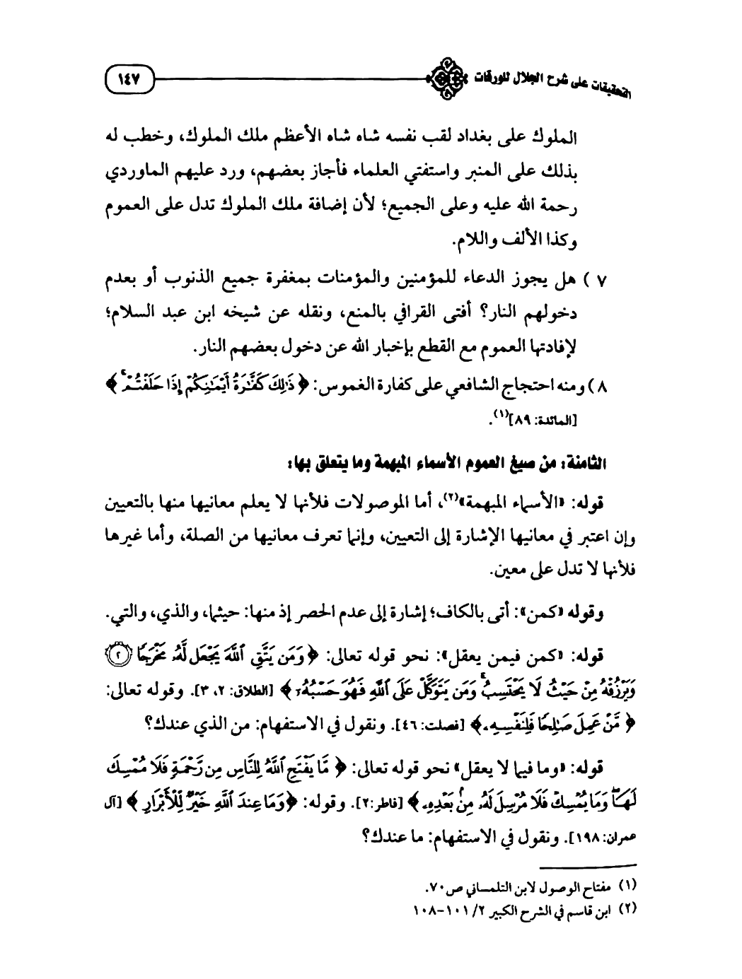 الثامنة: من صيغ العموم الأسماء المبهمة وما يتعلق بها: