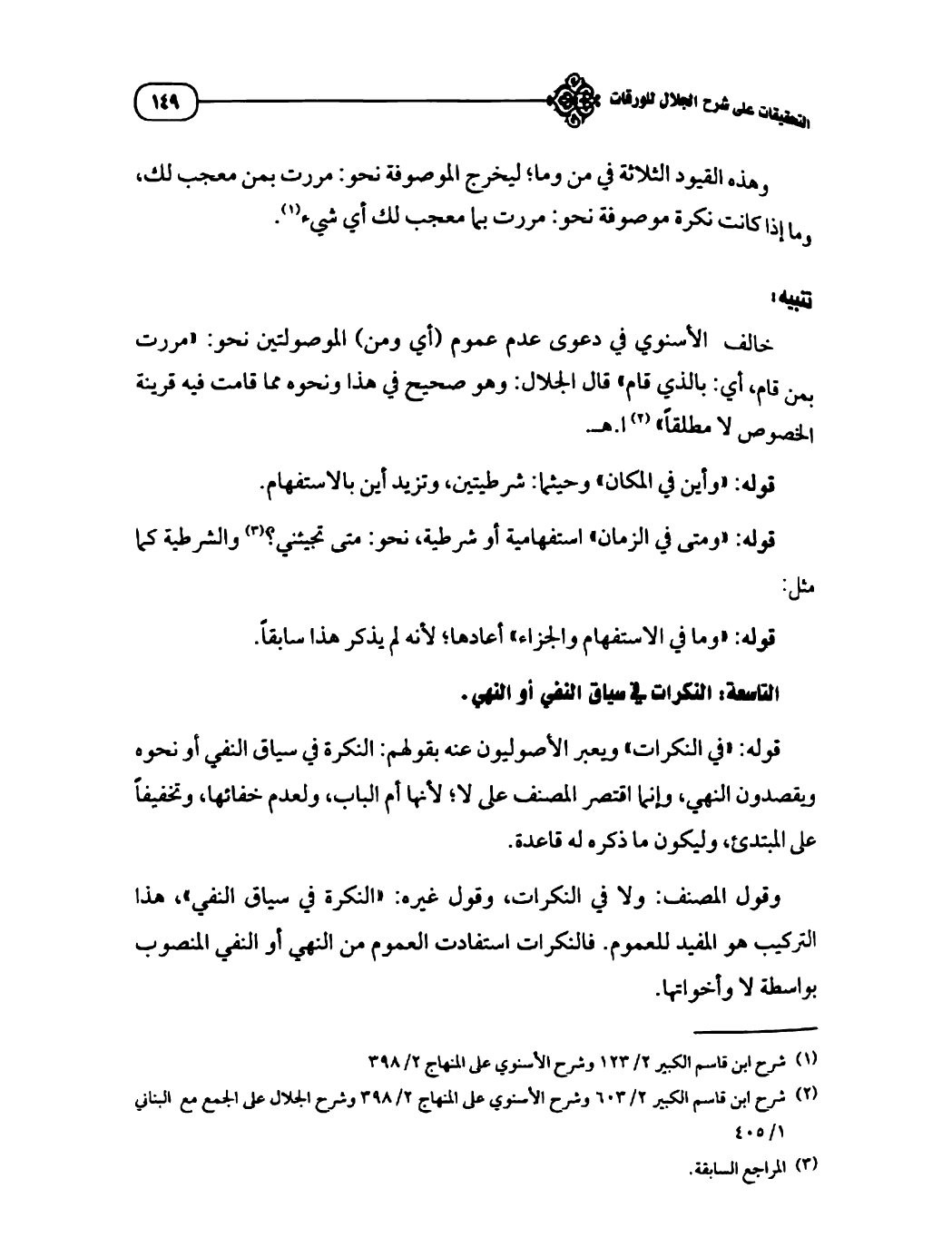 (¬٢) شرح ابن قاسم الكبير ٢/ ٦٠٣ وشرح الأسنوي على المنهاج ٢/ ٣٩٨ وشرح الجلال على الجمع مع البناني ١/ ٤٠٥